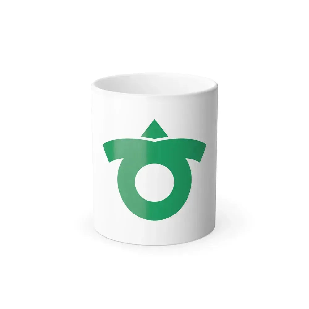 Hey there! This mug's got a secret. Starts black, but when you pour in some hot tea or coffee, boom - it reveals a sweet design inspired by that crazy-beautiful flag from Kariya Aichi Japan. Green mug, circle in the middle - looks stunning.