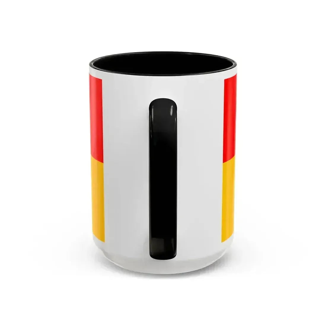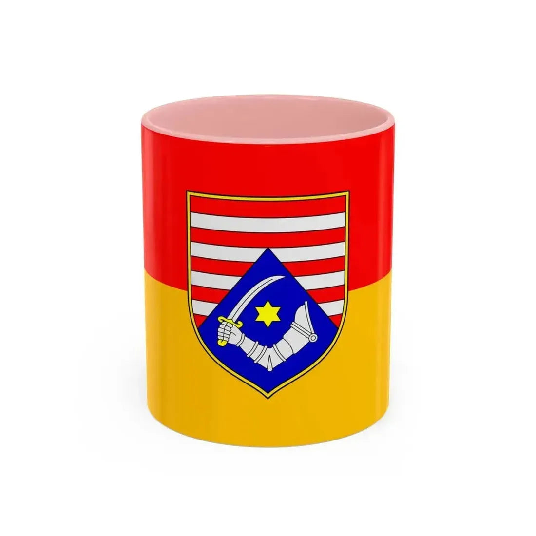 The "Flag of Karlovac County Croatia" Accent Coffee Mug is a unique piece that celebrates the rich heritage of the Karlovac region in Croatia. This mug showcases the official flag of Karlovac County as its design, making it an ideal choice for anyone with an appreciation for European heraldry or Croatian culture. The graphic on the mug features the county's distinctive coat of arms, which includes a shield adorned with a lion and four stars, symbolizing peace and unity.