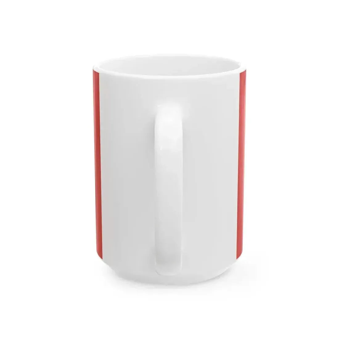 The "Flag of Knox County Ohio (United States)" White Coffee Mug is a unique drinkware item that showcases the official flag design of Knox County, located in the northeastern region of the U.S. state of Ohio. The flag, adopted in 1975, features a shield divided into four quarters. Each quarter represents one of the county's original townships: Franklin, Germany, Knox, and Salem. The shield is surrounded by a laurel wreath, symbolizing victory and accomplishment. This coffee mug offers a practical way to display your pride in the history and heritage of Knox County.
