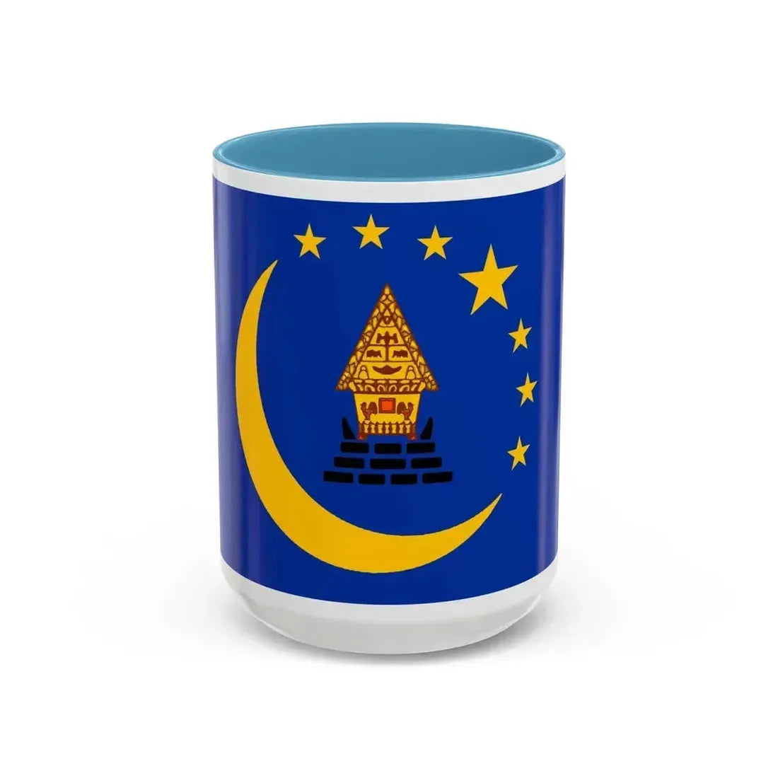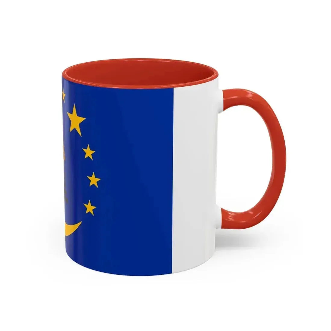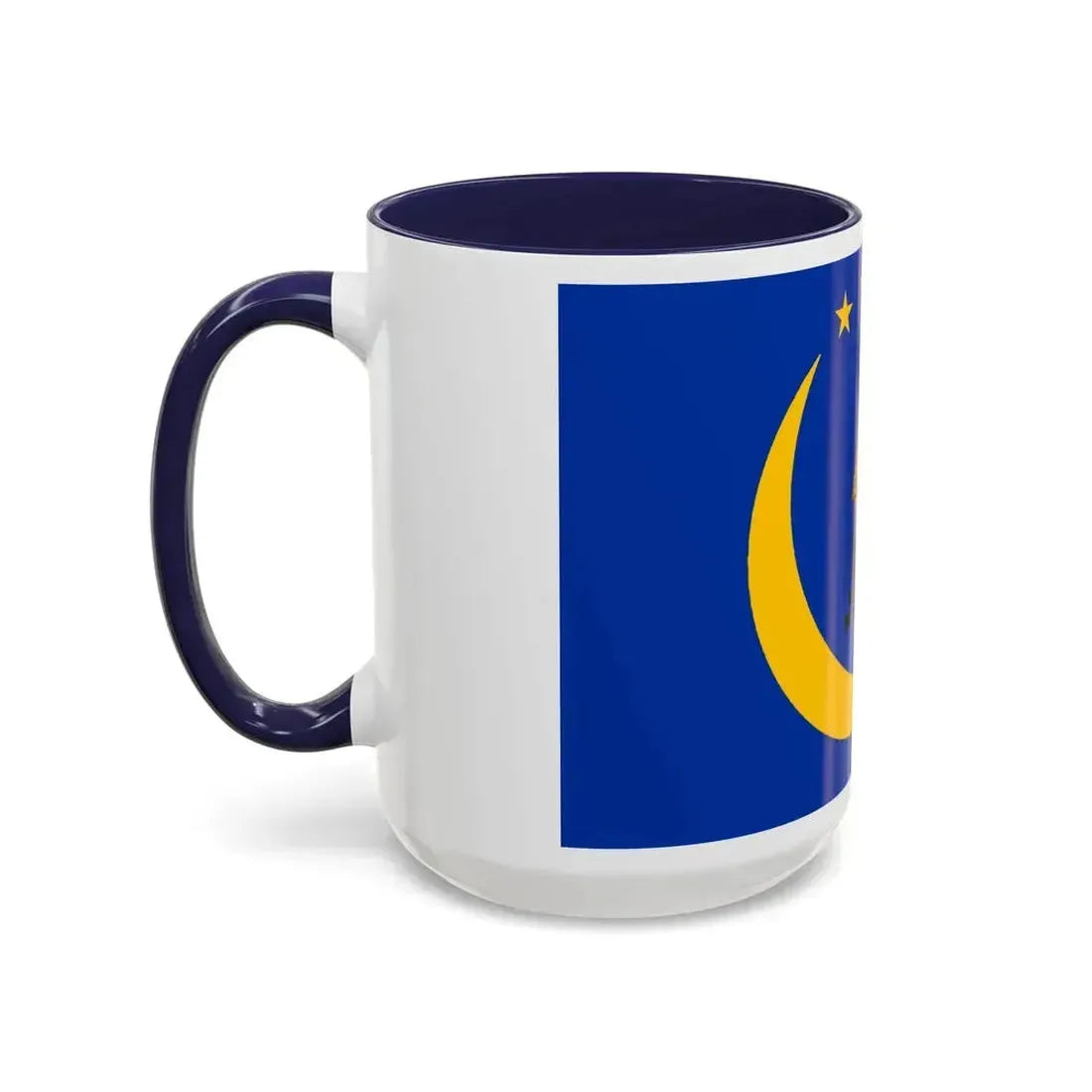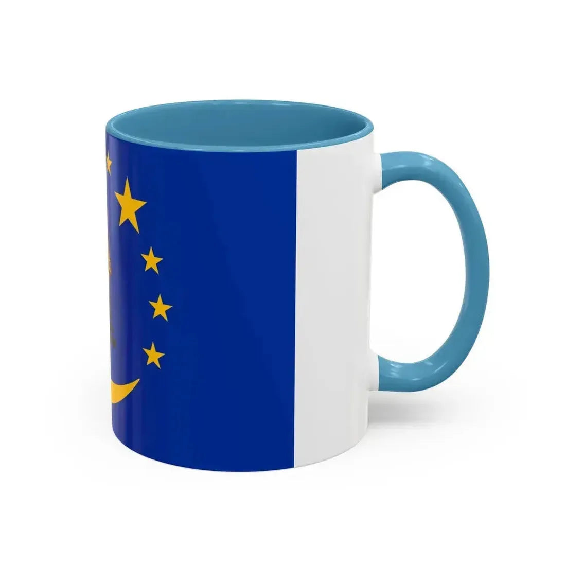 Accent ceramic mugs with a glossy white exterior and a colored interior & handle. Offered in 11 oz (≈330 ml) and 15 oz (≈440 ml), these mugs pair strong visual contrast with everyday durability — lead- and BPA-free.