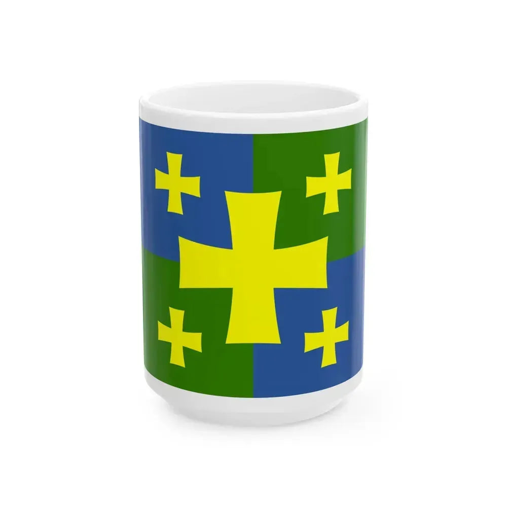 Step into the rich history of Kutaisi, Georgia with this White Coffee Mug adorned with the flag of the city. This design is inspired by the unique coat of arms and banner of Kutaisi, offering a tasteful way to showcase your affection for the city's heritage. The white background allows the vibrant colors and intricate details of the flag to truly shine, making each sip a reminder of the charm and beauty of Kutaisi.
