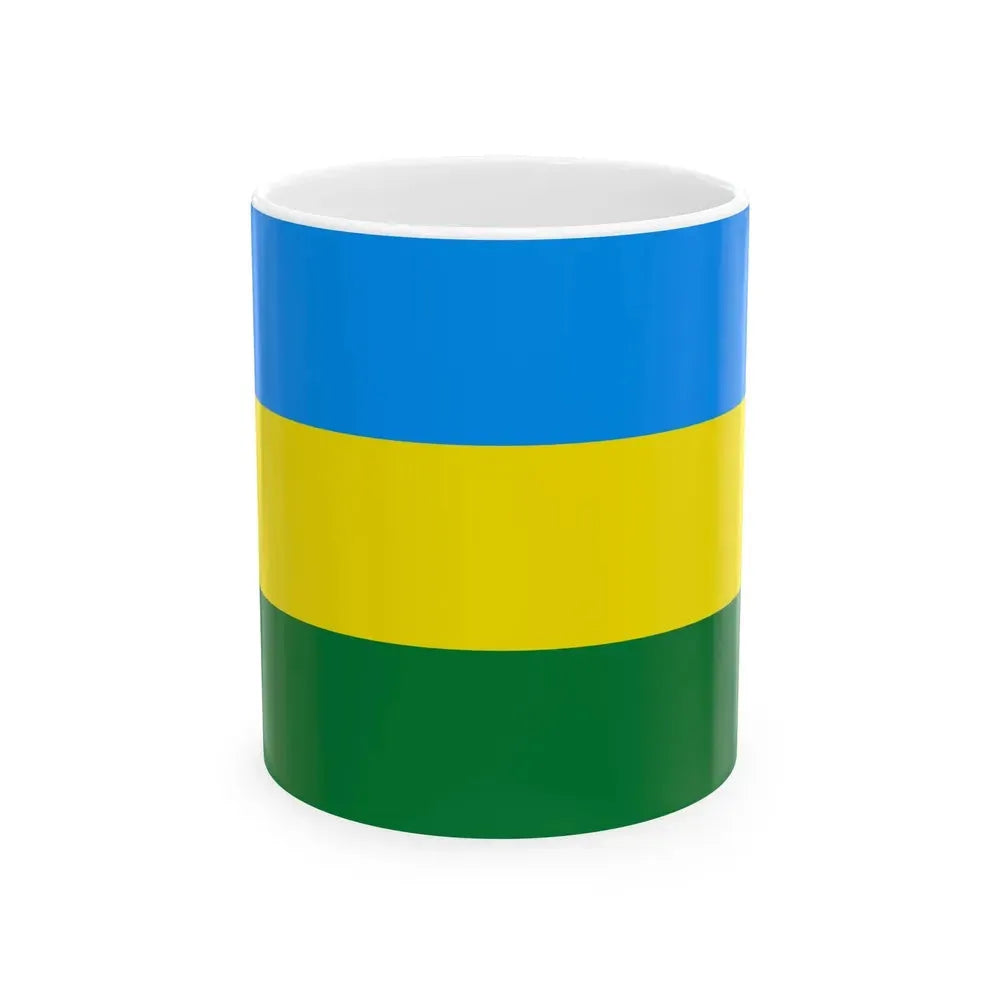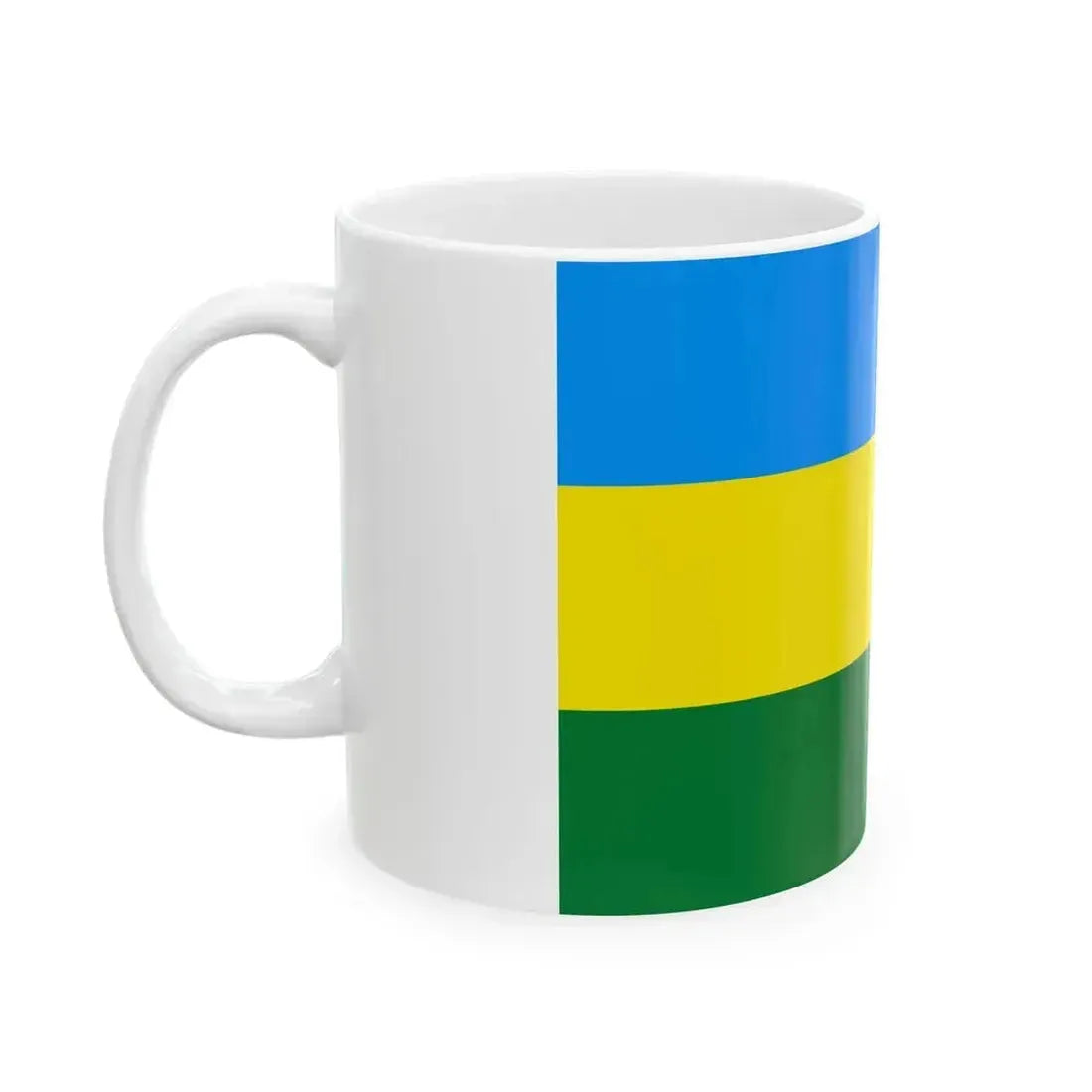 The "Flag of La Rivera Bolivia" design adorns this white coffee mug, offering a unique tribute to the rich history and culture of Bolivia. La Rivera is one of the nine departments in the Santa Cruz region, known for its vibrant economy and indigenous heritage. The flag, adopted on October 29, 1964, features three horizontal bands with colors representing the Yuracare flag: green symbolizing nature, red representing the blood spilled in defense of freedom, and yellow for natural wealth.