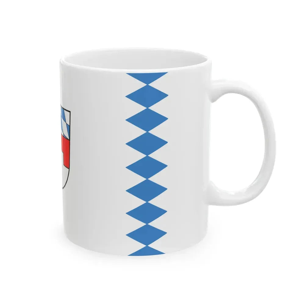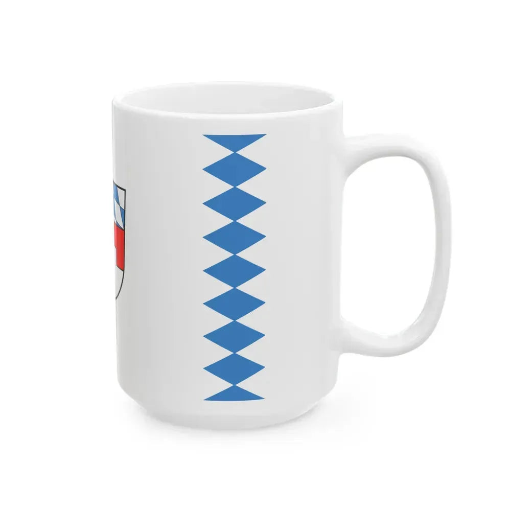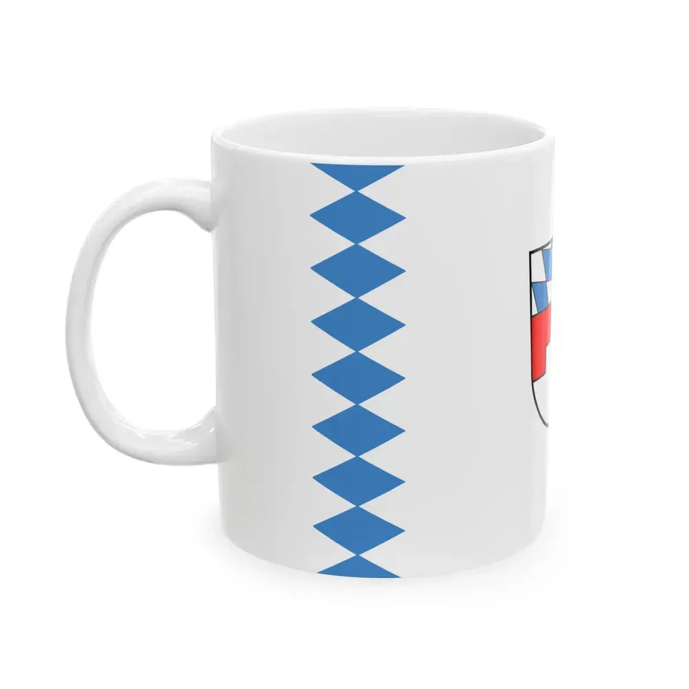 This White Coffee Mug showcases a design inspired by the iconic Flag of Landshut, Germany. The city flag represents Landshut's history and its status as the seat of Bavaria's dukes from 1307 to 1425. The design features the city's coat of arms, consisting of a red shield with a white "L" (for Landshut) in the center. Surrounding the shield are three silver stars, symbolizing Landshut's status as one of Bavaria's oldest and most prominent cities. This mug serves as a unique conversation starter for anyone with an interest in German history or Bavarian culture.