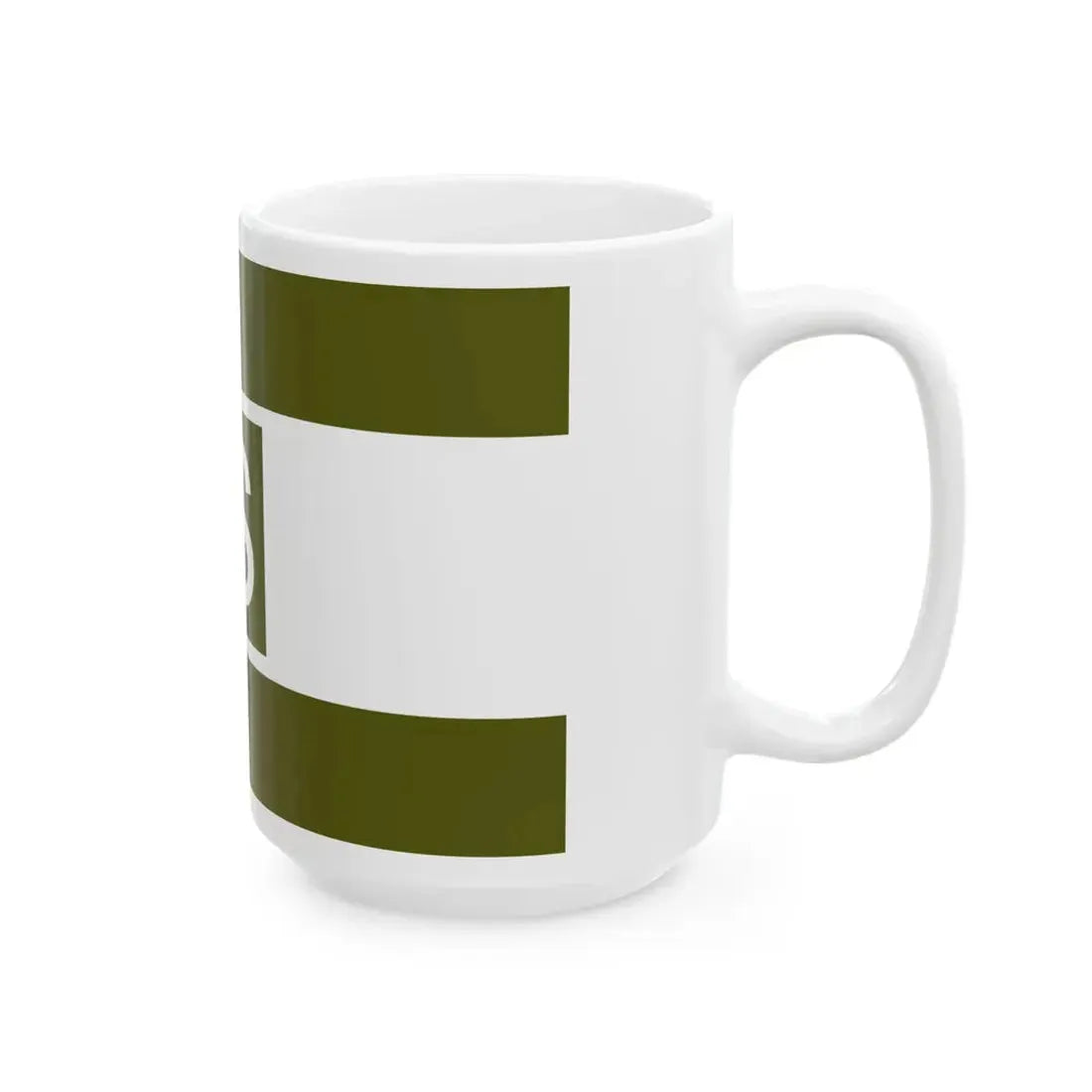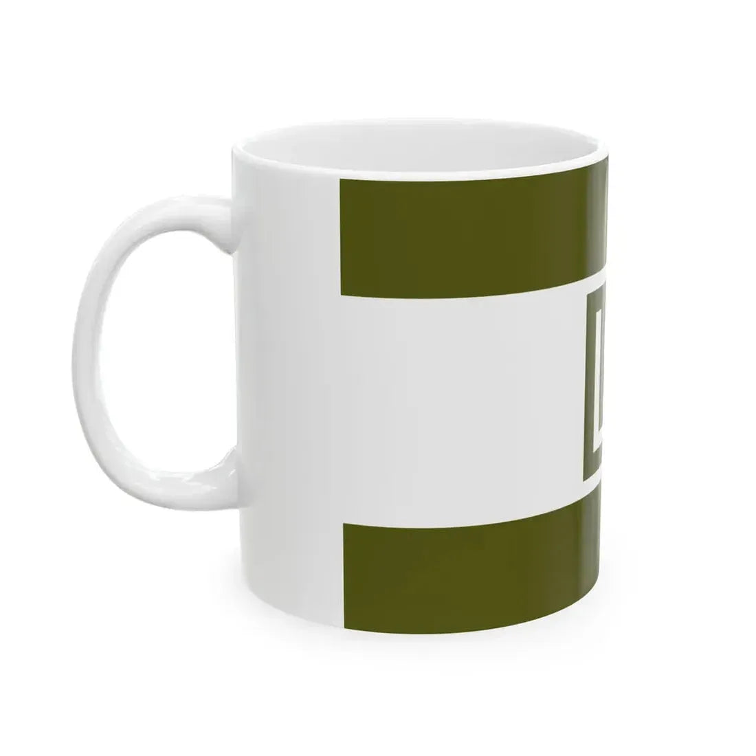 The "Flag of Lee's Summit Missouri (United States) White Coffee Mug" showcases a distinctive representation of the city's flag. The design incorporates elements symbolic of Lee's Summit's history and identity, making it an ideal choice for residents and admirers of this vibrant city in Missouri. The flag itself is a blend of blue, white, and green, with the city seal at its center. The seal features a shield divided into four quadrants, each representing a different aspect of Lee's Summit's history: agriculture, industry, recreation, and education. This mug serves as an excellent conversation starter and a unique addition to any coffee or tea lover's collection, perfect for anyone who appreciates unique and cool drinkware.