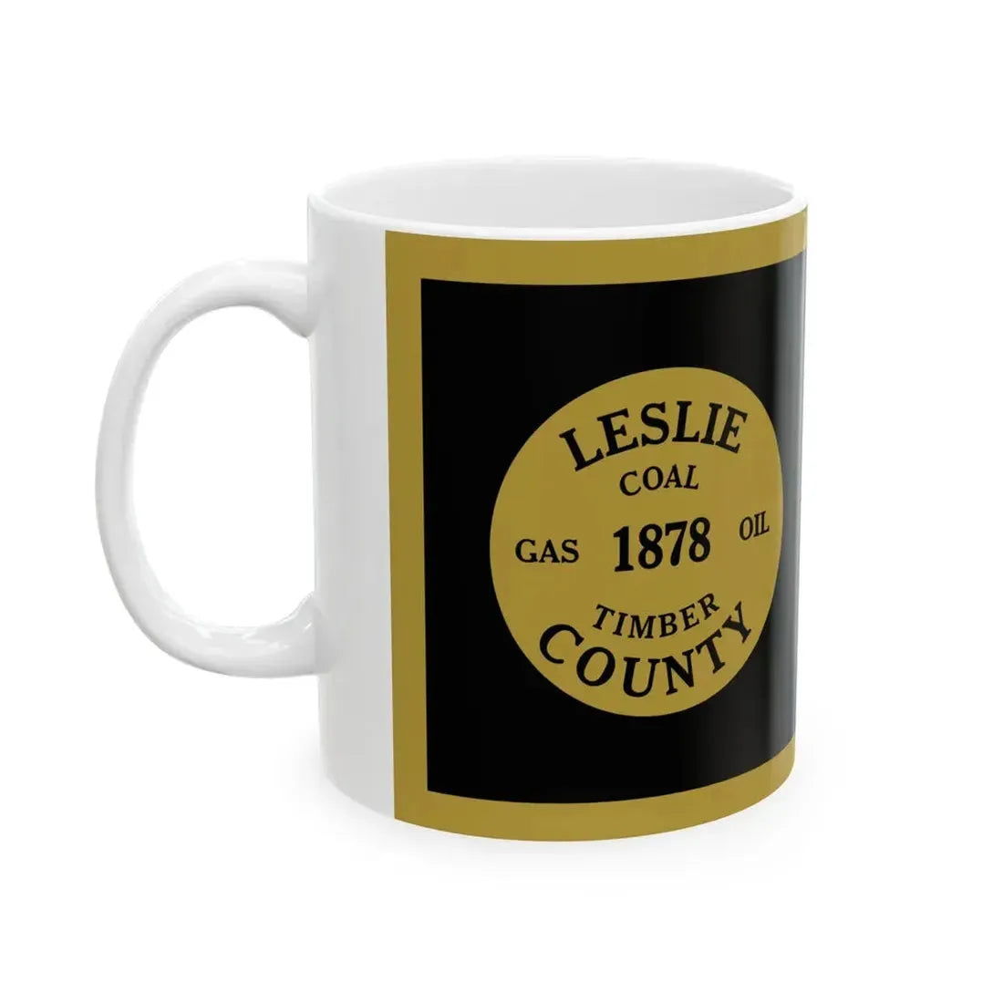 The "Flag of Leslie County Kentucky (United States) White Coffee Mug" is a for individuals who cherish Americana themes, enjoy the rural beauty of Appalachia, or have roots in the region. This mug offers a tasteful and practical way to showcase one's affection for Kentucky's history and charm. Whether it's for daily use at home or as a conversation starter in an office setting, this design-focused coffee mug is a thoughtful choice for anyone seeking unique and cool drinkware.