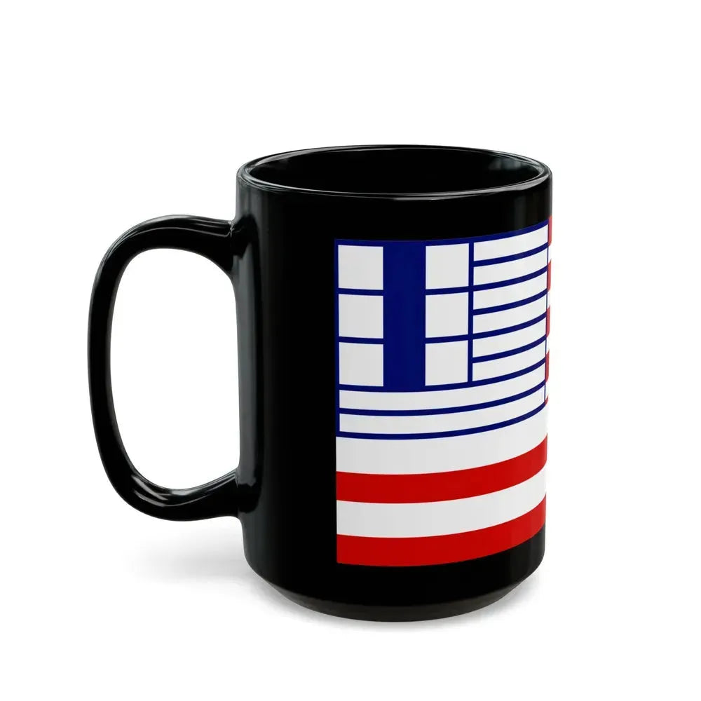 The "Flag of Lethbridge Canada - Black Coffee Mug" is a unique piece of drinkware that showcases the official flag of the city of Lethbridge, Alberta, Canada. The design on this mug reflects the heraldic achievement granted to the city in 1970, featuring three gold maple leaves on a field divided per saltire into four quarters: green and white for Canada; red and gold for Alberta; and quarterly azure and argent for the city of Lethbridge. This design symbolizes the city's history, pride, and connection to both the national and provincial identities.