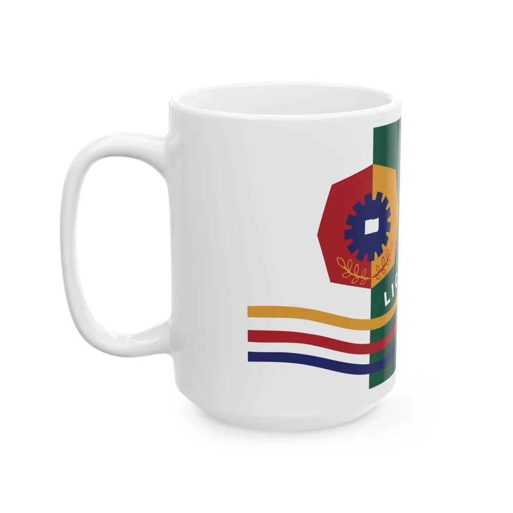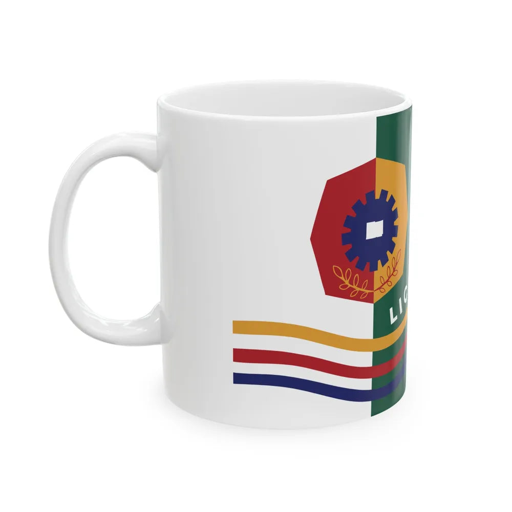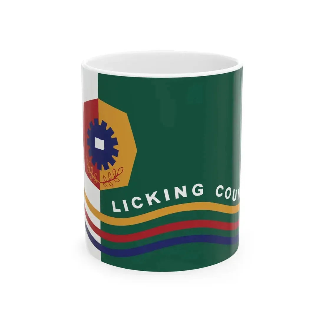 This white coffee mug features an intricate design that showcases the Flag of Licking County, Ohio, United States. The flag's vibrant colors, symbolizing unity, justice, and progress, make for a captivating piece of art on this mug. This design is perfect for those with an appreciation for American geography, history, or those who hold a special affinity for Licking County. Whether you are enjoying your morning coffee at home or taking a break at the office, this mug serves as a daily reminder of the rich heritage and history embedded within this county.
