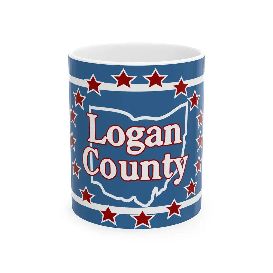 This White Coffee Mug showcases a replica of the Flag of Logan County, Ohio, United States. The design features a field of alternating red and white stripes representing the 13 original colonies, with a blue square in the upper left corner containing a white five-pointed star symbolizing the state of Ohio. In the center, the county seal is prominently displayed. The seal includes a shield divided into four quarters, each quarter showcasing a different aspect of Logan County's history: agriculture, industry, education, and natural resources. This mug makes for an excellent gift for anyone who appreciates unique and cool drinkware, as well as those with a special affinity for the rich history and culture of Logan County, Ohio.