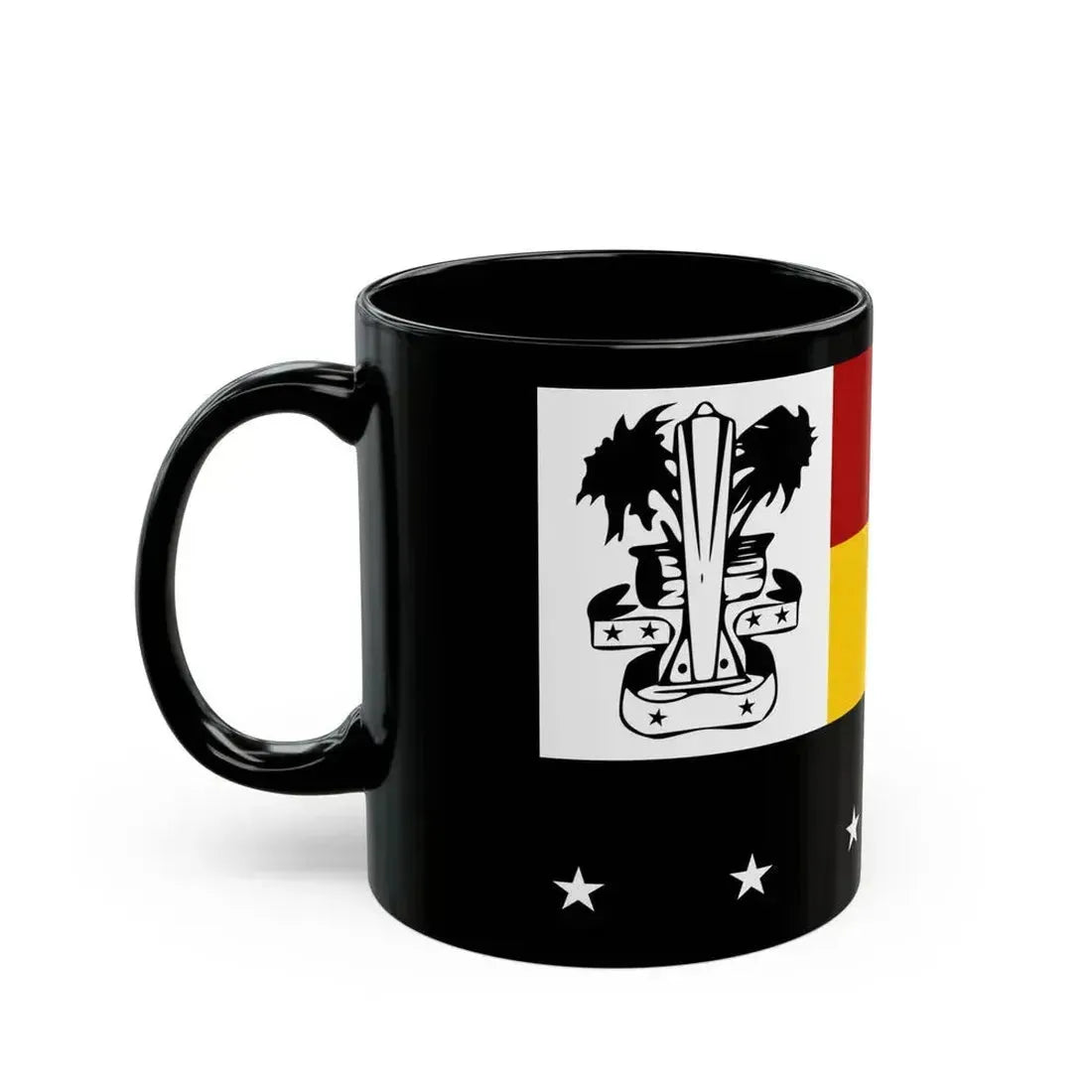 The Flag of Madang Papa New Guinea - Black Coffee Mug is not just a functional item but also a piece of art. The design, inspired by the official flag, offers a glimpse into the traditions and history of the region. Whether you're sipping your morning coffee or enjoying an afternoon beverage, this mug serves as a constant reminder of Madang and its vibrant culture. Perfect for anyone who appreciates unique and cool drinkware.