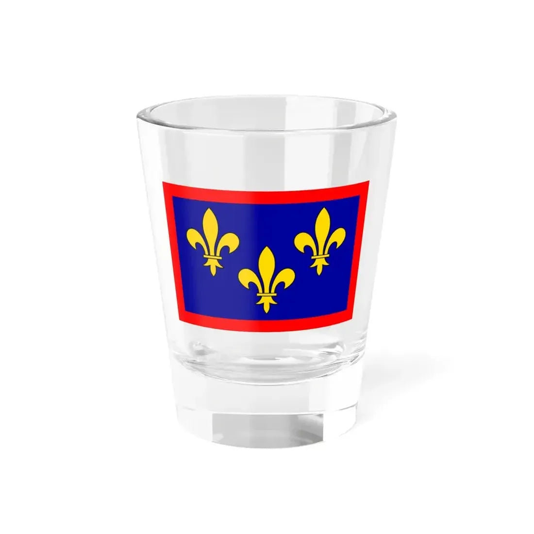 This shot glass showcases an iconic design inspired by the Flag of Maine-et-Loire, a department in western France. The flag's distinctive blue cross on a white background is replicated faithfully, making it an ideal choice for those who appreciate French symbols or regional pride. This 1.5 oz glass could serve as a unique addition to your barware collection, adding a touch of European charm to your drinking experience.