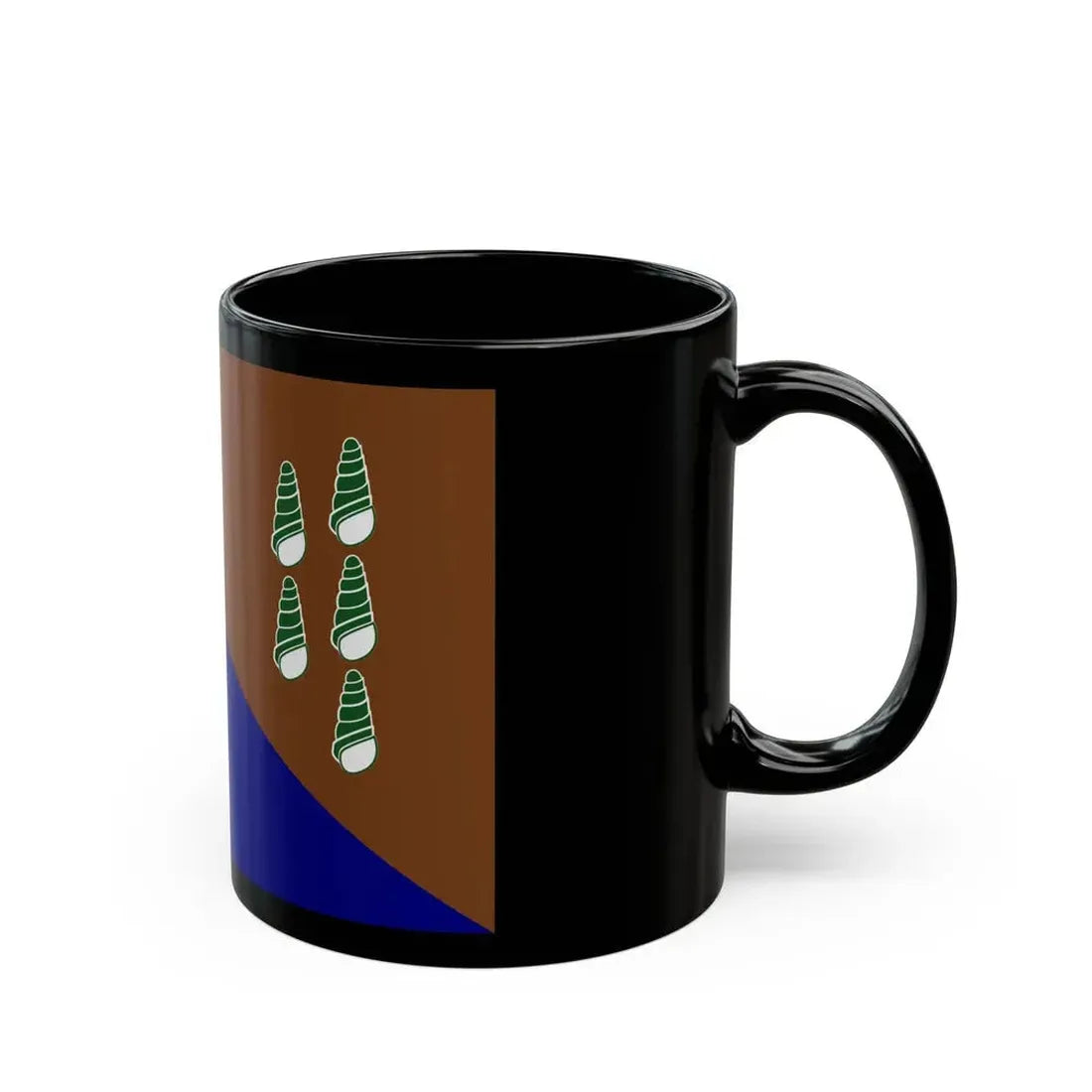This Black Coffee Mug showcases an intriguing design inspired by the Flag of Manus Province, a unique symbol of Papua New Guinea's rich cultural heritage. The flag, with its vibrant green field and two vertical yellow bars, is a representation of unity and harmony between the people of Manus and their land. By displaying this flag on your coffee mug, you bring a touch of exotic beauty to your daily morning routine. This mug serves as an excellent conversation starter for those who appreciate world cultures and unique artwork.