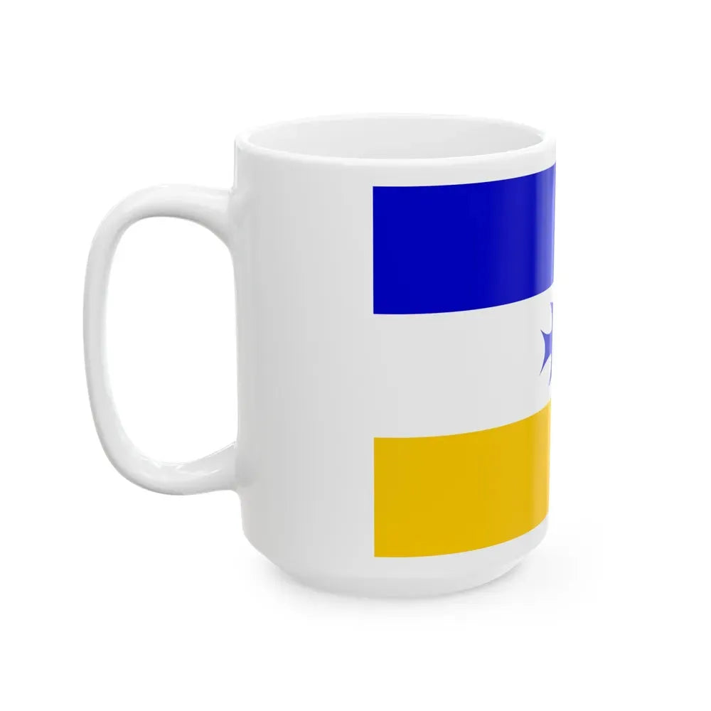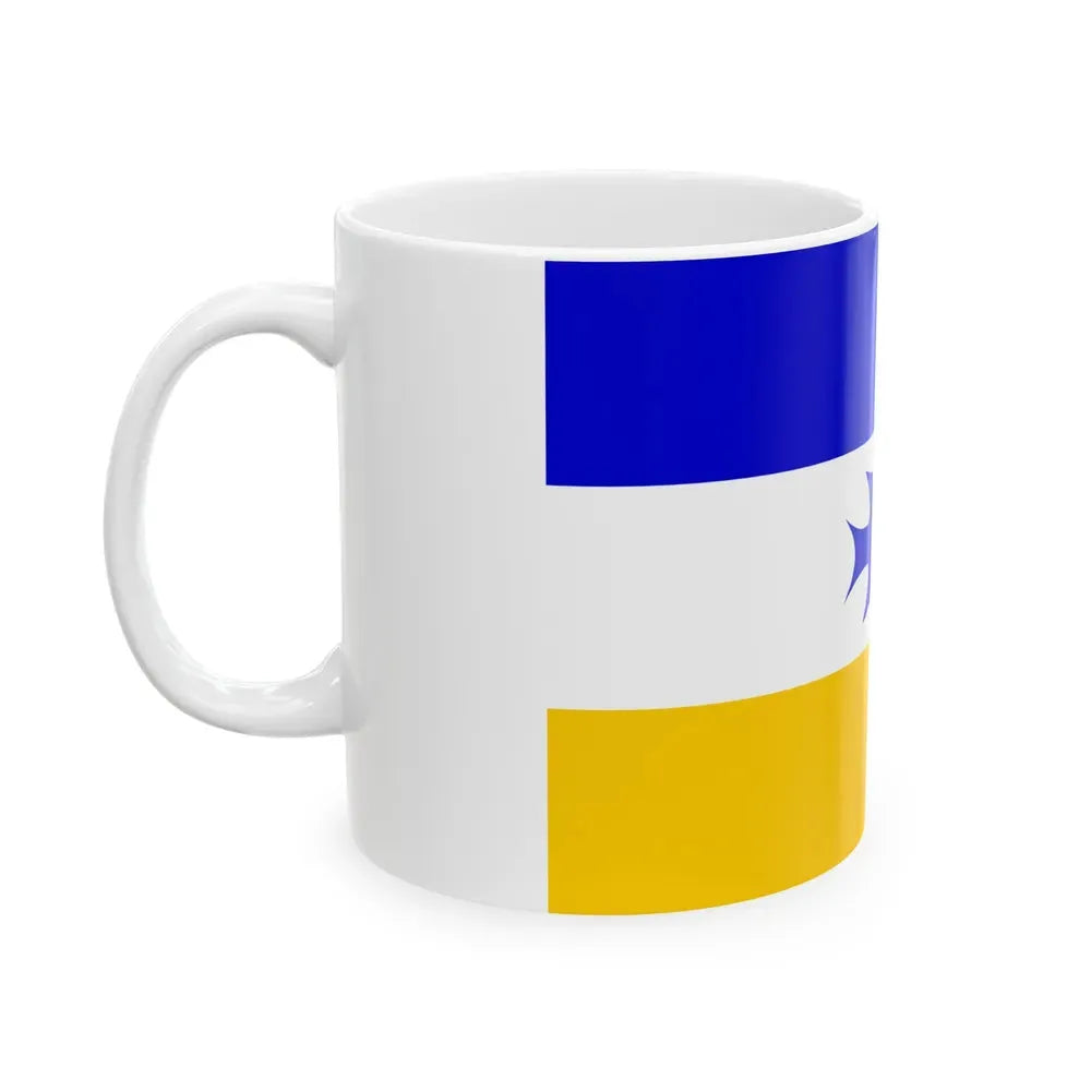The Mapuche flag design has been carefully crafted onto the white ceramic surface of this practical and stylish mug. The mug's sturdy construction ensures that it can hold your favorite hot beverages without any spills or leaks. This coffee mug is not only a functional piece for your daily routine but also serves as a conversation starter, offering insights into the Mapuche culture and history. Whether you are looking to expand your collection of ethnographic drinkware or simply want to add a touch of cultural flair to your kitchenware, the "Flag of Mapuche - White Coffee Mug" is an excellent choice.