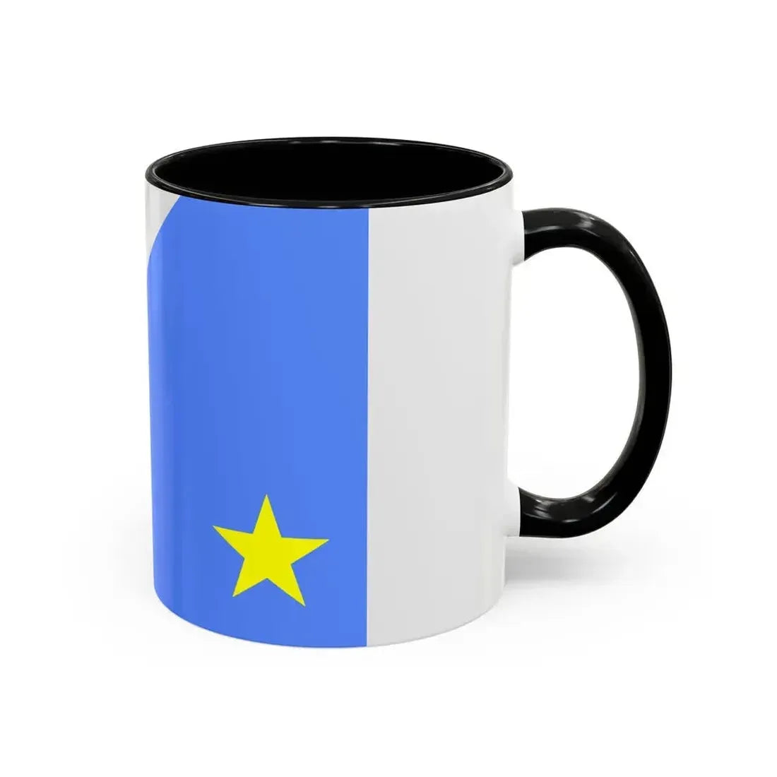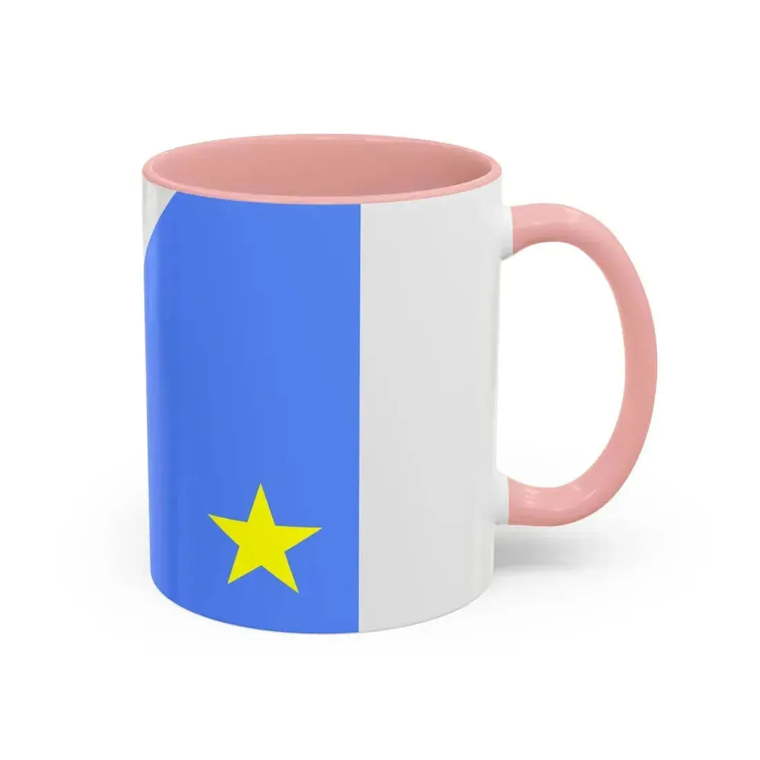 Accent ceramic mugs with a glossy white exterior and a colored interior & handle. Offered in 11 oz (≈330 ml) and 15 oz (≈440 ml), these mugs pair strong visual contrast with everyday durability — lead- and BPA-free.