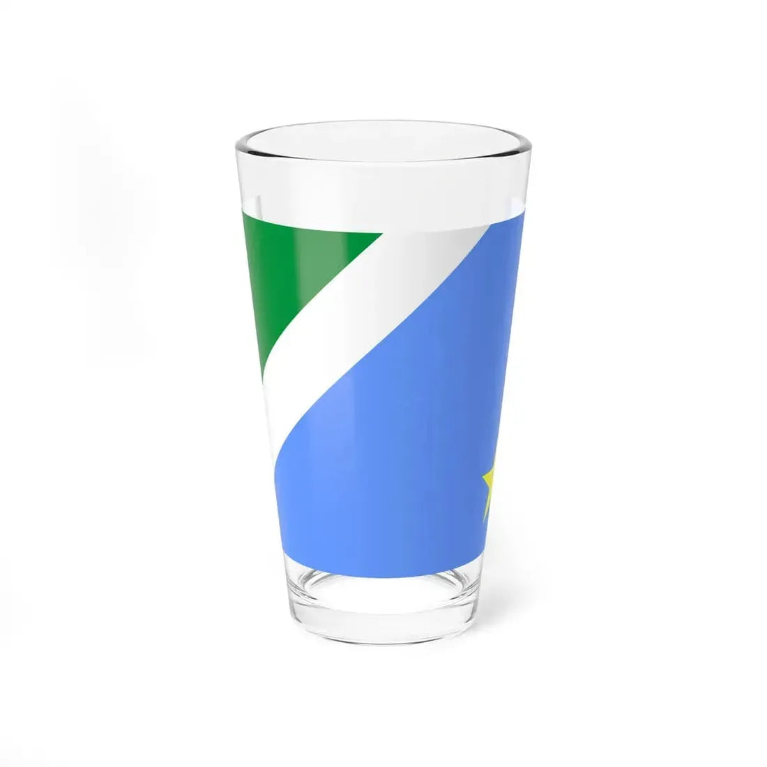 The Flag of Mato Grosso do Sul, Brazil, is depicted on this unique 16oz pint glass, making it an excellent addition to any collection or barware set. The design features the official flag's symbolism, including the blue field representing the sky and the river, the yellow disk symbolizing the sun, and the green area representing the lush vegetation of the state. This drinkware item is a great conversation starter for those who appreciate Brazilian culture, especially Mato Grosso do Sul, or anyone interested in geography and regional symbols.