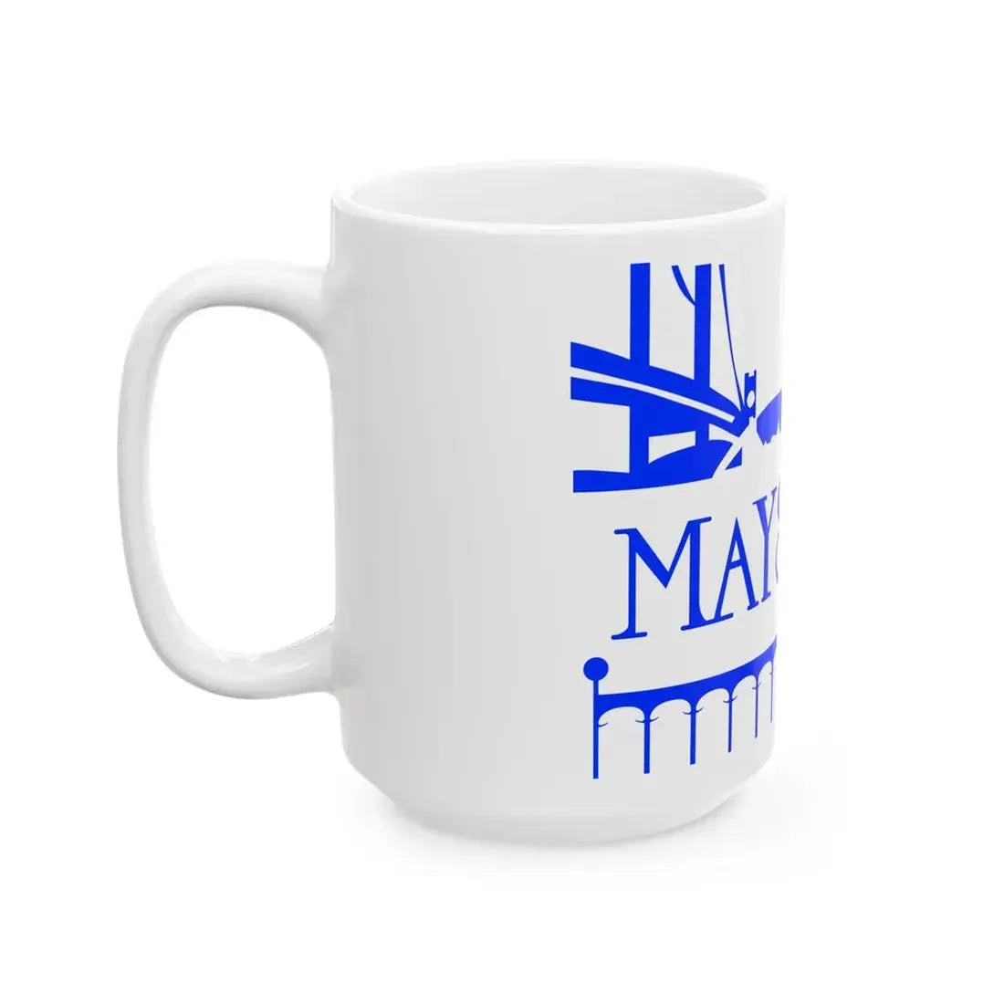 This white coffee mug showcases the Flag of Maysville, Kentucky (United States), making it a perfect conversation starter for proud citizens of the city or those with an affinity for American states' symbols. The design features the flag's distinctive red and white stripes, with a large blue canton bearing a star, symbolizing Maysville as the state's 17th city. The intricate artwork on this mug serves as a reminder of the rich history and unique character of this charming town.
