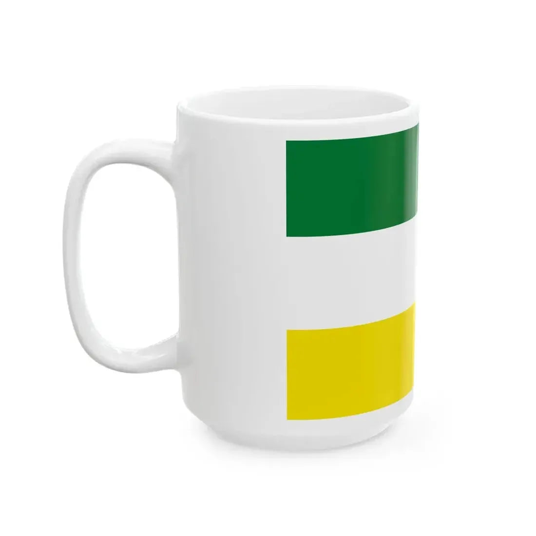 Mecapaca's flag has a significant historical background. It was officially adopted on September 20, 2013, during the first Mecapaca Provincial Assembly. The quipu symbol represents the cultural and historic continuity of the province, showcasing its Incan heritage. The three horizontal stripes in the flag are said to represent the three indigenous communities that make up Mecapaca: Aymara, Quechua, and Guarani. This mug serves as a tangible reminder of this historical significance and makes for an engaging conversation piece when used.