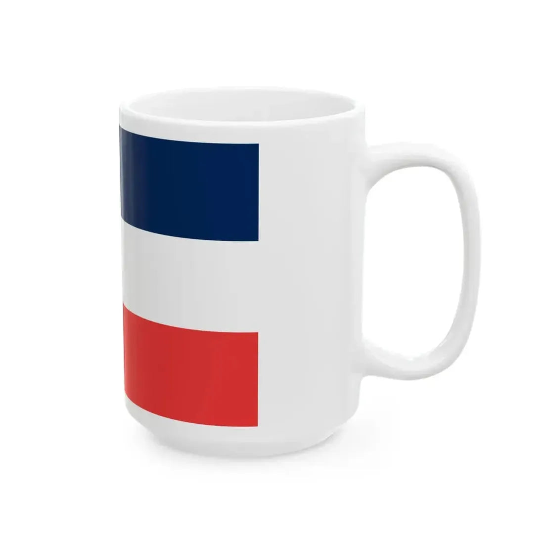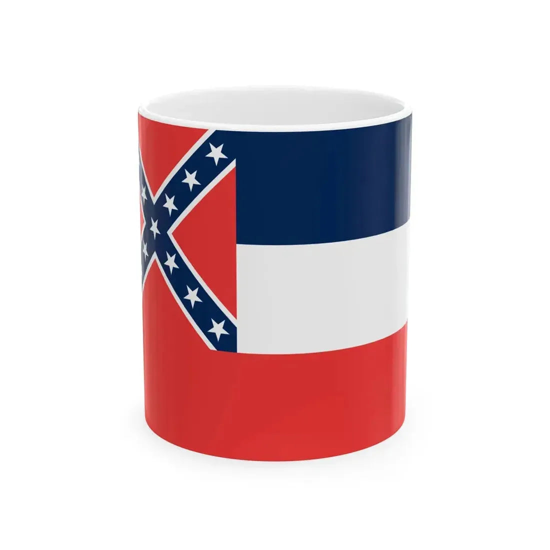 Delve into the rich history of the United States with this unique coffee mug featuring the design of the Flag of Mississippi used from 1894 to 1906. This flag, also known as the "Stars and Bars," is significant as it was one of the flags flown by the Confederate States of America during the Civil War. The design includes a white background with three horizontal stripes – red, white, and red – and in the upper left corner, a blue canton bearing 19 white stars representing the states that seceded from the Union at the time. History enthusiasts will appreciate this piece of Americana as a conversation starter or a subtle nod to the past.