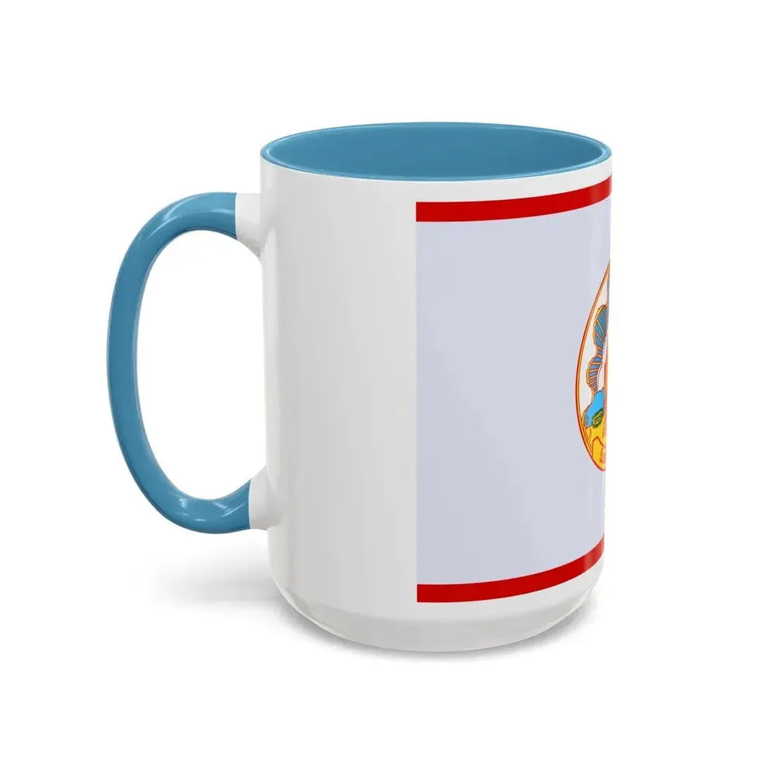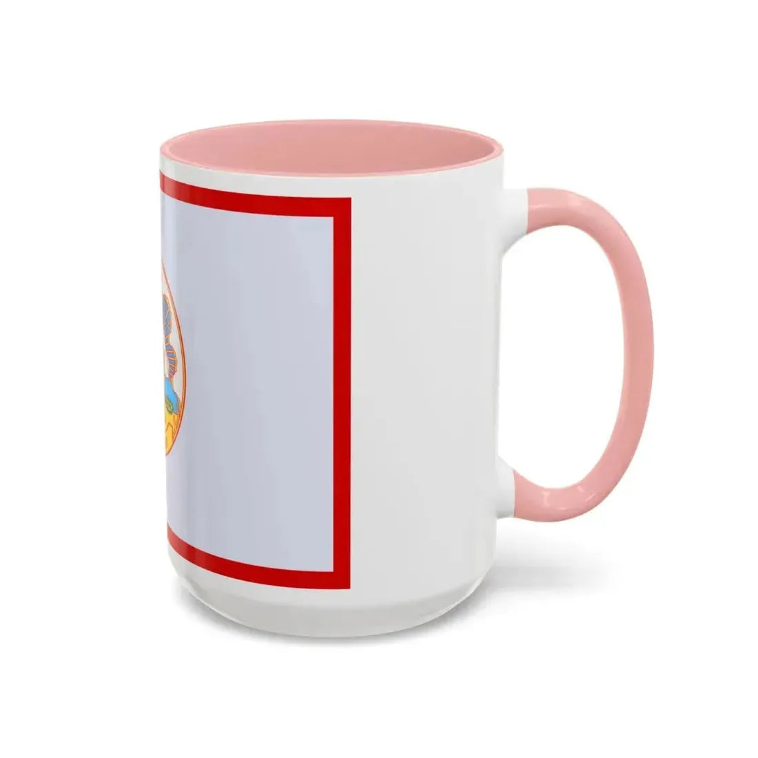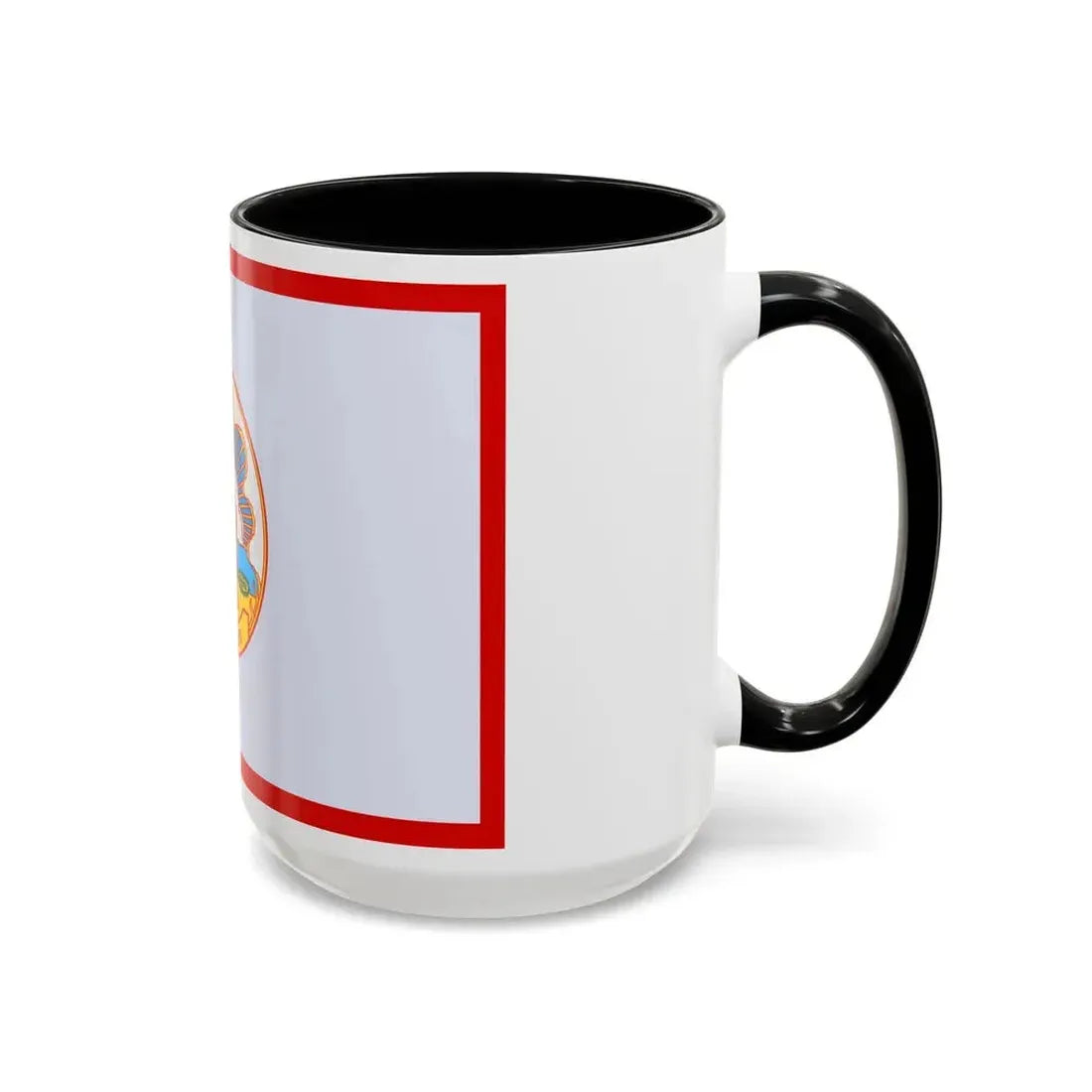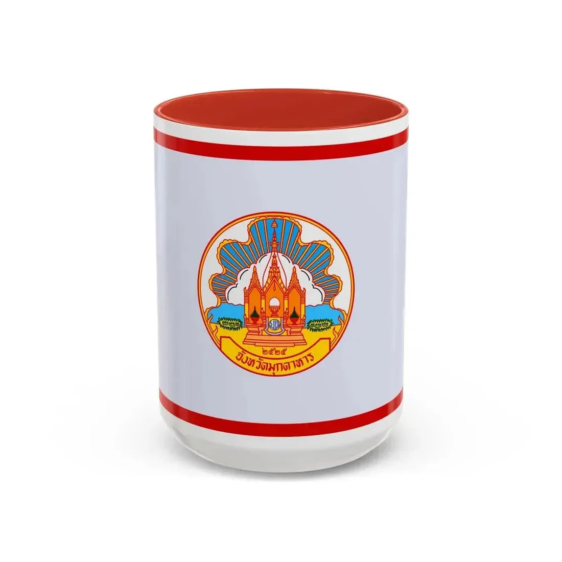The Flag of Mokdahan Province Thailand - Accent Coffee Mug is crafted with materials and features a grip. The design is vivid and clear, making it easy to appreciate the intricate details of the flag. Whether you're enjoying your morning coffee or unwinding with an afternoon beverage, this mug serves as a constant reminder of Thailand's diverse regions and their unique histories. Share your love for Thai culture with every sip from this beautifully designed Accent Coffee Mug.