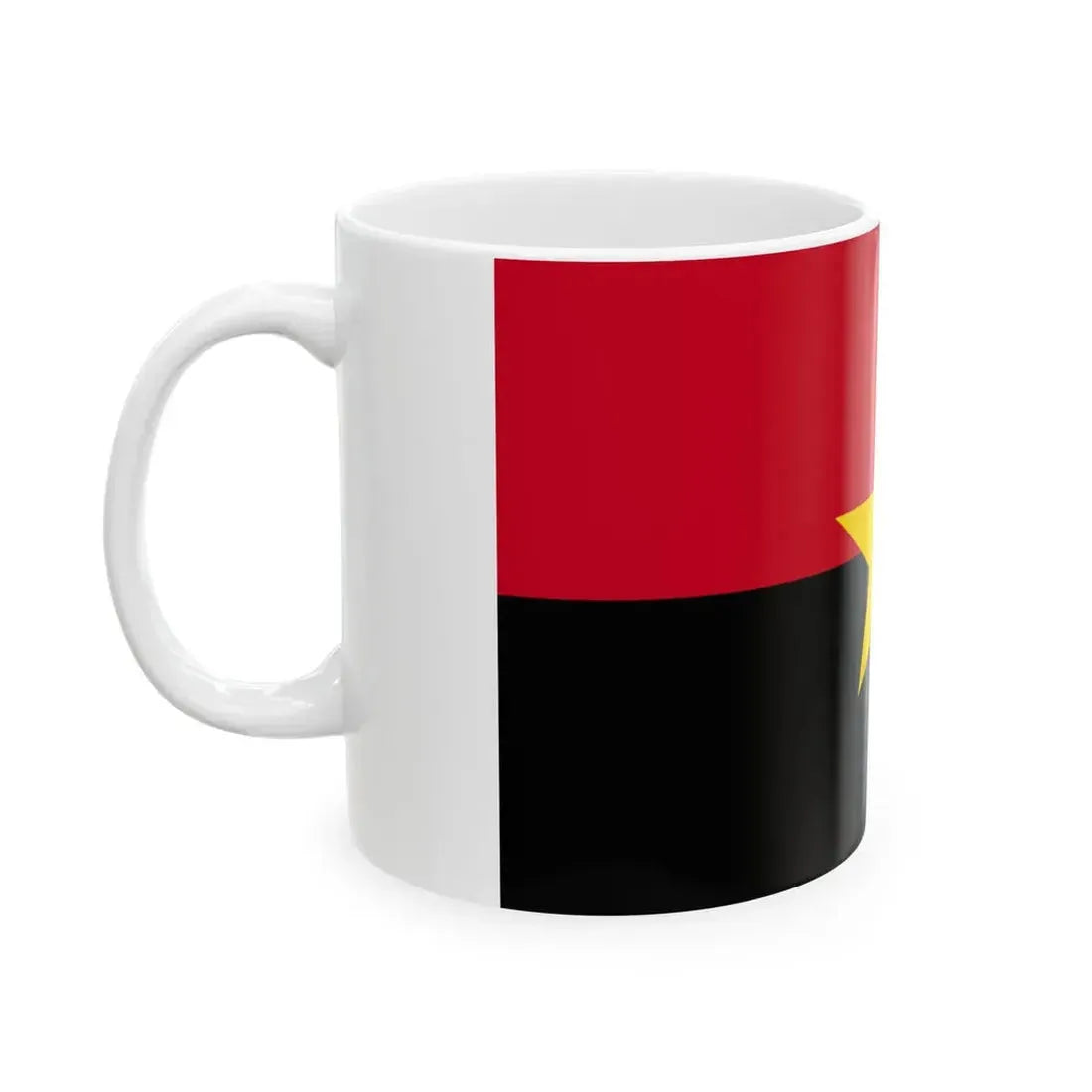 The "Flag of MPLA (Angola) White Coffee Mug" showcases a symbolic representation of Angolan politics, specifically the MPLA (Movimento Popular de Libertação de Angola), which has played a significant role in Angola's history and political landscape. The mug's design features the official flag of the MPLA party, characterized by its three horizontal stripes - green, black, and red - symbolizing the struggle for independence, unity, and the Communist ideology, respectively. This coffee mug serves as a unique and thought-provoking piece of Angolan political history, making it perfect for anyone who appreciates unique and cool drinkware, particularly those with an interest in African politics or Angola's rich cultural heritage.