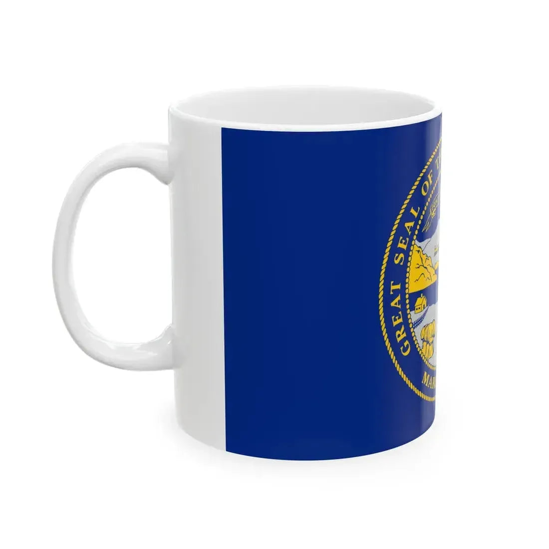 This Flag of Nebraska (United States) White Coffee Mug is a thoughtful tribute to the proud heritage of the Cornhusker State. The mug showcases an accurate representation of the Nebraska flag, with its unique design featuring a buffalo symbolizing agriculture and a plow symbolizing hard work, on a field of alternating red and white stripes and a single white star representing Nebraska as the 16th state. It's a for anyone who appreciates unique and cool drinkware, particularly those with an affinity for Nebraska or American history.
