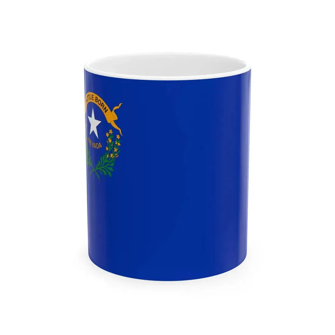 This white coffee mug features a design inspired by the Flag of Nevada, one of the 50 states in the United States. The design replicates the official state flag, which showcases the seal of the State of Nevada, framed within a field of white and bearing the state's motto, "All For Our Country." The intricate details on this mug make it a perfect representation of Nevada's rich history and pride. Ideal for Nevadans or those who appreciate unique and cool drinkware.