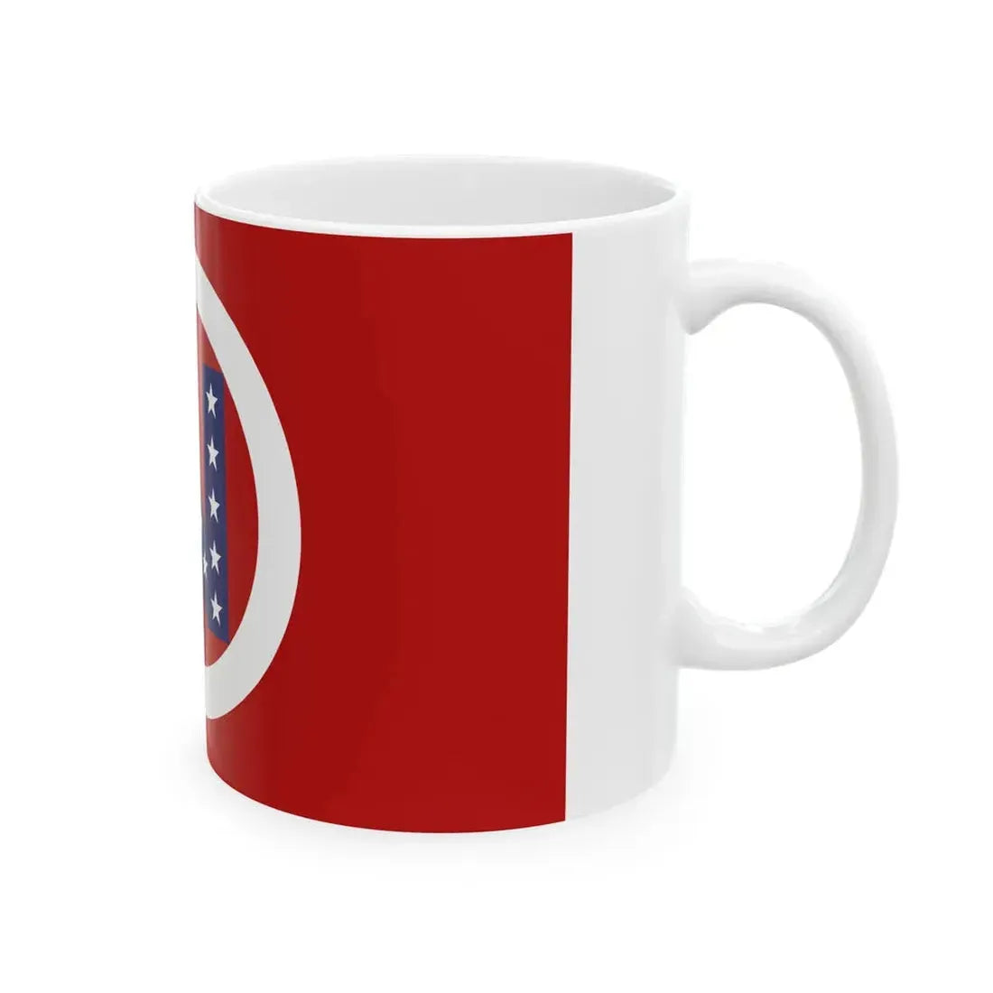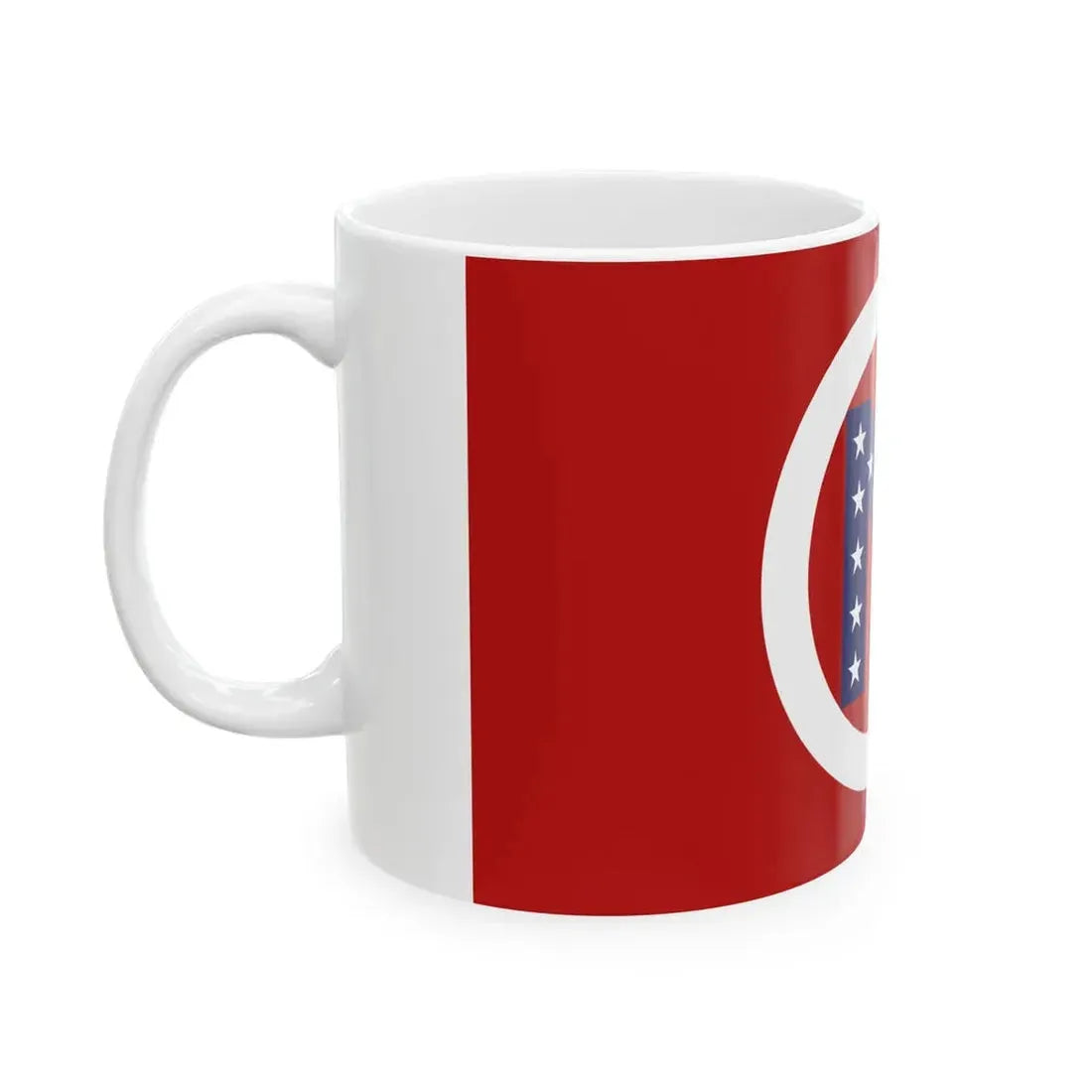 This White Coffee Mug showcases a distinctive design inspired by the Flag of Noble County, Ohio, United States. The flag features a blue field with the county's seal in the center. The seal comprises a white star representing each of the original 13 colonies, encircled by a chain link, symbolizing unity and connection. A shield rests atop the star, adorned with an antique tractor, a nod to the region's agricultural heritage. This design is perfect for anyone who appreciates unique and cool drinkware, as well as those with ties or interest in Noble County or Ohio.