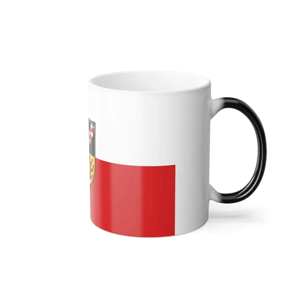 Embodying the vibrant spirit of Germany's federal state of Brandenburg, this Color Changing Coffee Mug features a distinctive design inspired by the Flag of Oder-Spree. This unique mug captures the tricolor emblem of Oder-Spree, symbolizing unity and harmony. The design subtly changes color when hot or cold beverages are poured into it, adding an interactive element to your drinking experience. This innovative coffee mug is perfect for anyone who appreciates unique and cool drinkware, as well as those with a soft spot for German culture, history, or geography.