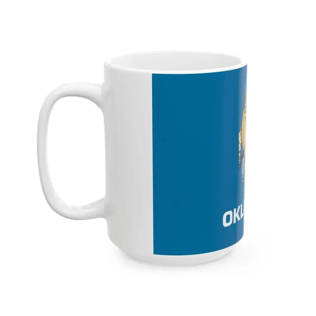 This White Coffee Mug showcases the design of the Flag of Oklahoma used from 1988 to 2006, during which period it symbolized the spirit of this vibrant U.S. state. The flag features a field of green representing oil, the state's most important industry. Above the green field is a circular patch of red with a buffalo head and rays extending from it, symbolizing the Native American tribes and the sunrise over the plains. A circle of white stars surrounds the red patch, representing Oklahoma's seven tribes and its status as the 46th state. Perfect for anyone who appreciates unique and cool drinkware, this mug makes an excellent gift for history buffs, Oklahomans, or anyone intrigued by American symbolism.