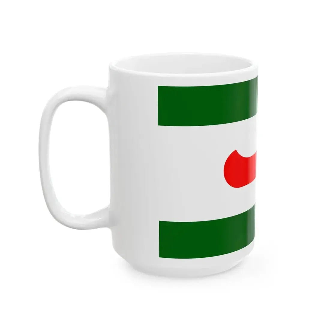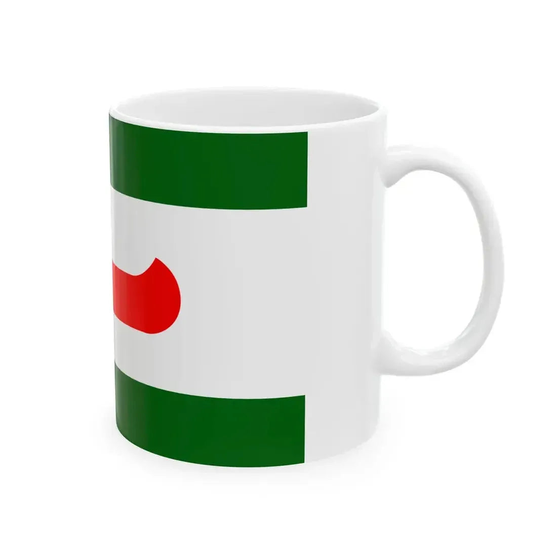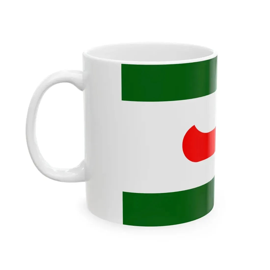 This White Coffee Mug features a design inspired by the Flag of Old Town Maine, United States. The artwork showcases the town's rich history, symbolized through the intricate pattern of stars, stripes, and the distinctive pine tree emblem. Ideal for those who cherish Americana heritage or have fond memories of New England, this mug serves as a conversation starter and a nostalgic piece in your daily brewing rituals.