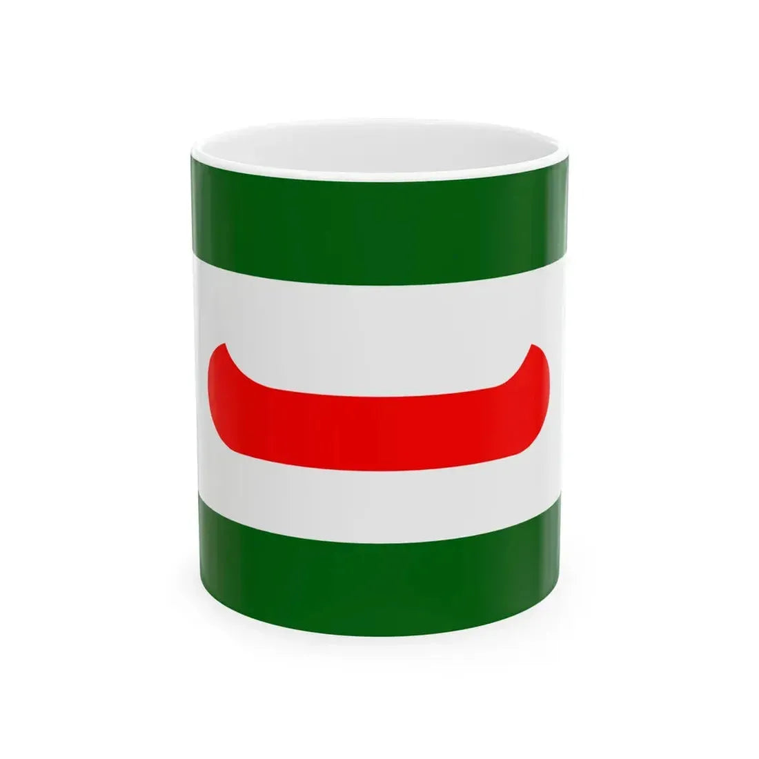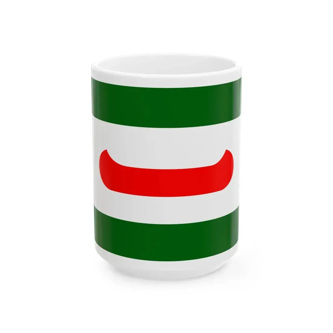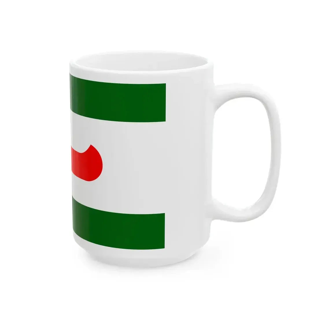 This White Coffee Mug features a design inspired by the Flag of Old Town Maine, United States. The artwork showcases the town's rich history, symbolized through the intricate pattern of stars, stripes, and the distinctive pine tree emblem. Ideal for those who cherish Americana heritage or have fond memories of New England, this mug serves as a conversation starter and a nostalgic piece in your daily brewing rituals.