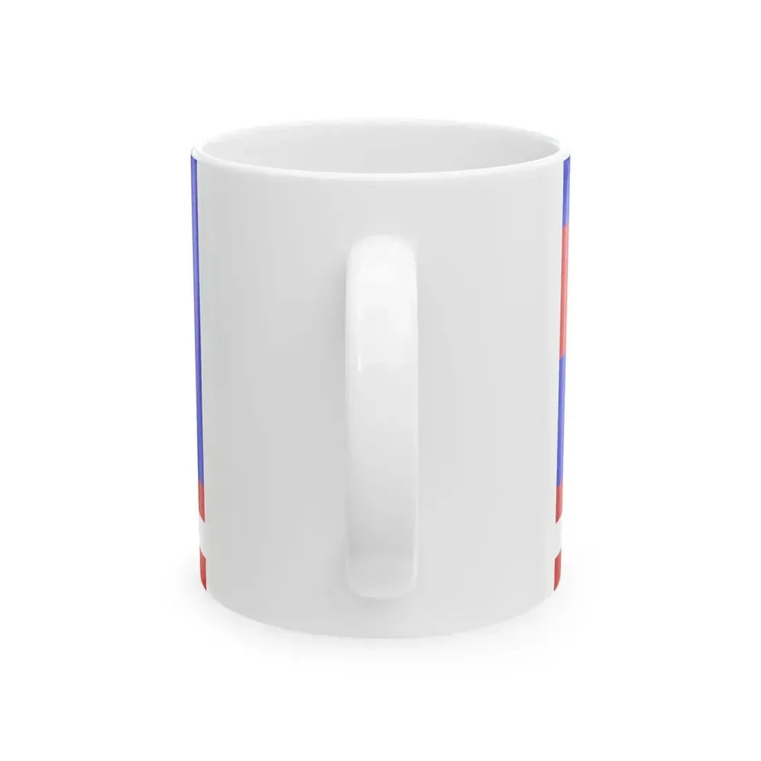 This White Coffee Mug features a unique design that showcases the Flag of Ottawa County, Ohio, United States. The flag's six vertical stripes, symbolizing the county's six original townships, are represented in crisp, bold lines against the clean white background. The flag's central emblem, a compass star with an outline of the state, adds a touch of historical detail. This mug is perfect for anyone who appreciates unique and cool drinkware, as well as those who have a soft spot for American county history.
