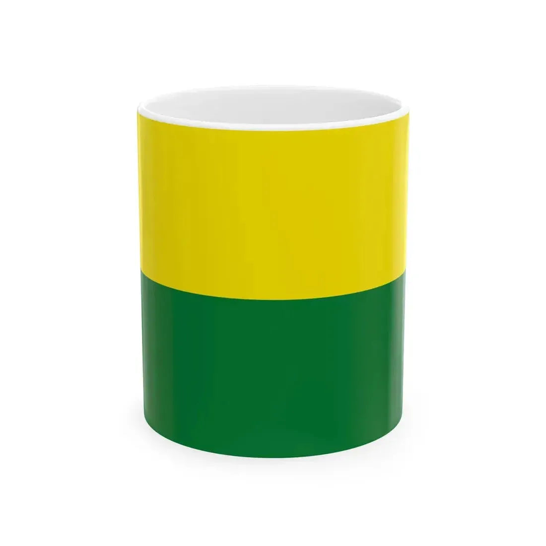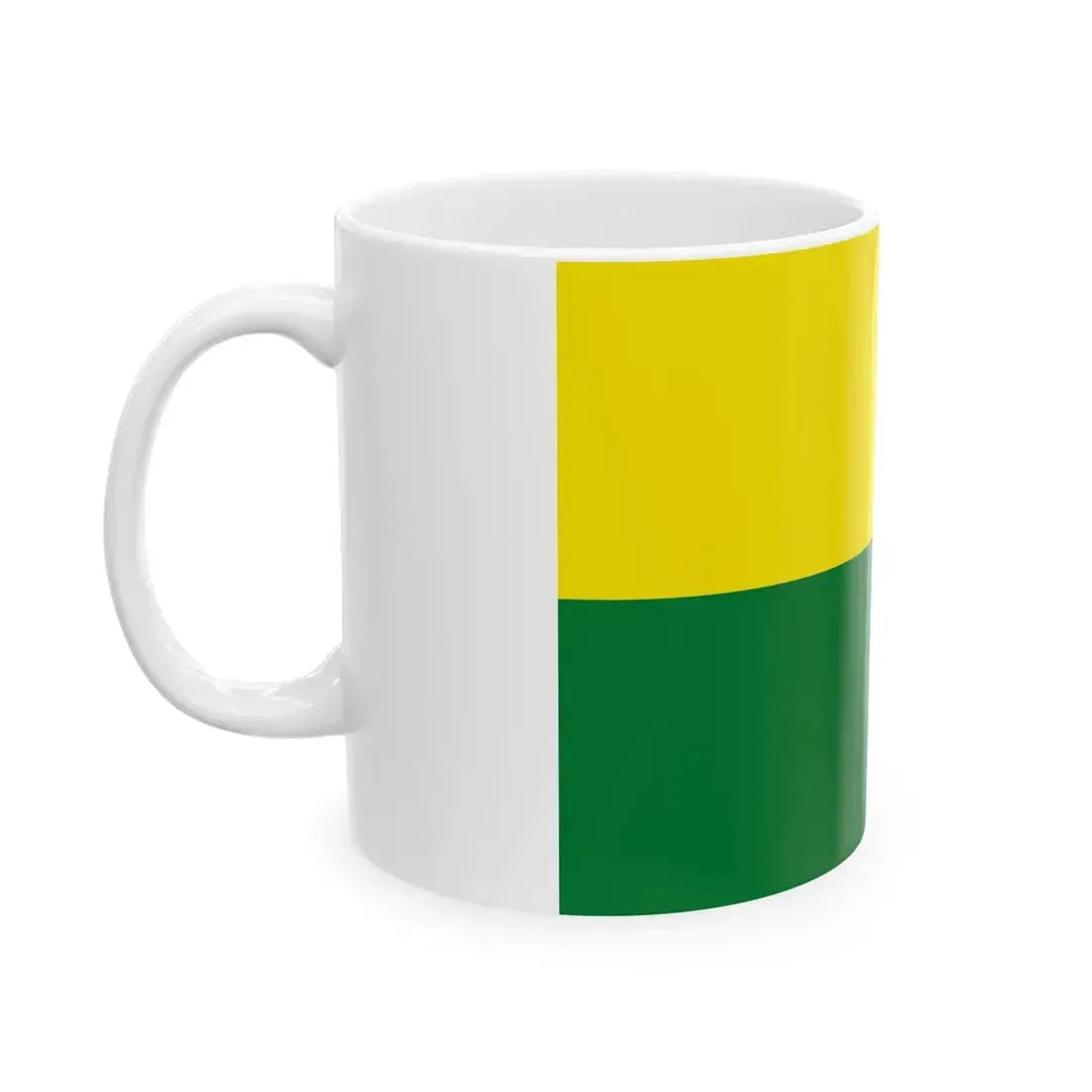 This unique white coffee mug showcases the Flag of Patacamaya, a symbol of Bolivia's rich cultural heritage. The design features three horizontal bands of red, yellow, and green, symbolizing the indigenous Aymara and Quechua peoples, the mestizo population, and the European influences, respectively. In the center is a coat of arms bearing a condor, representing freedom, and an Andean cross, embodying the country's strong spiritual beliefs. This mug is perfect for anyone who appreciates unique and cool drinkware, as well as those with an interest in South American history or culture.