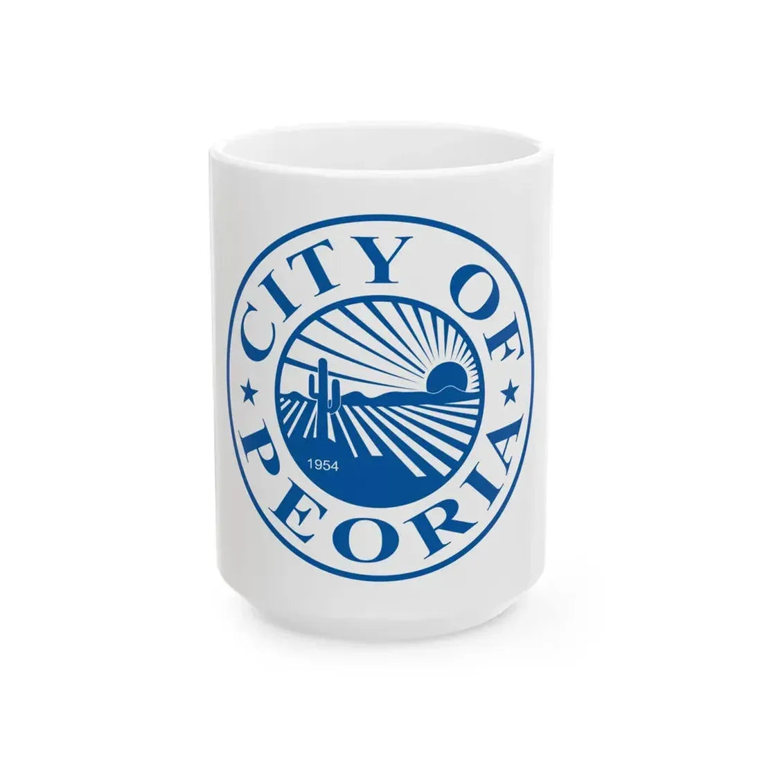The Flag of Peoria, Arizona, served as the city's official emblem from 1954 until its replacement in 2017. Its timeless design captures the essence of this vibrant city, making it an ideal choice for those interested in American history and Southwestern culture. With a sturdy construction, this white coffee mug is perfect for enjoying your favorite hot beverages while appreciating a piece of history. It's a great addition to any home or office collection, and makes a thoughtful gift for history buffs or Peoria enthusiasts.