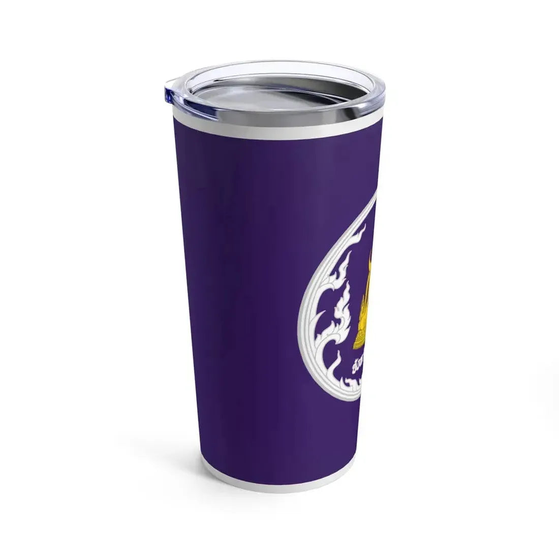 Experience a taste of Thailand's rich cultural heritage with this 20oz tumbler featuring the iconic Flag of Phitsanulok Province. This drinkware showcases intricate artwork depicting the unique flag design, which is characterized by its four horizontally placed white stripes and central emblem representing Lord Indra riding an elephant. Perfect for anyone who appreciates unique and cool drinkware, this tumbler serves as a conversation starter and a subtle nod to Thai history and tradition.