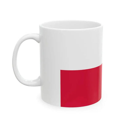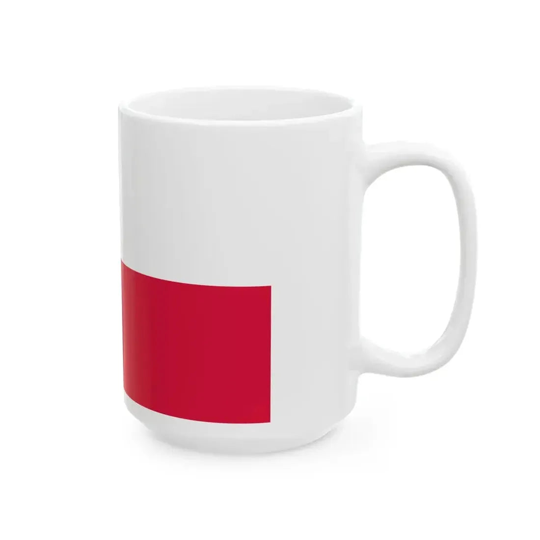 Sturdy white ceramic mugs available in 11 oz (≈330 ml) and 15 oz (≈440 ml), with a glossy finish and comfortable C-handle — microwave and dishwasher safe, and made from lead- and BPA-free materials.