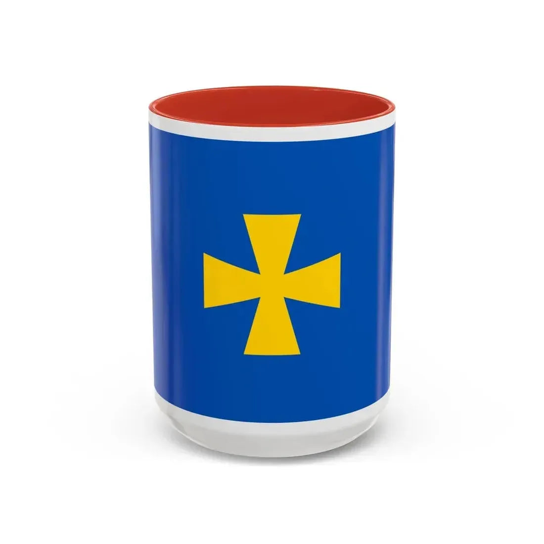 The Flag of Poltava Oblast Ukraine Accent Coffee Mug offers a practical way to display the region's pride and heritage. The ceramic construction ensures durability, while the detailed artwork on the mug maintains its vibrancy after multiple uses. Whether used for everyday use or as a thoughtful gift, this mug is an excellent choice for those who appreciate unique design elements and a hint of geographical history in their daily lives.