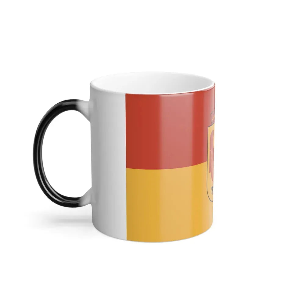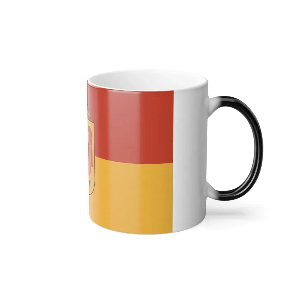Experience a fusion of history and modernity with this Color Changing Coffee Mug inspired by the Flag of Potsdam, Germany. This unique drinkware showcases an artistic representation of the city's emblematic flag, with its distinctive stripes and coat of arms. As you pour in your favorite beverage, the mug reveals a captivating transformation - the colors shift from one shade to another, creating a mesmerizing visual effect that reflects the vibrant spirit of Potsdam.