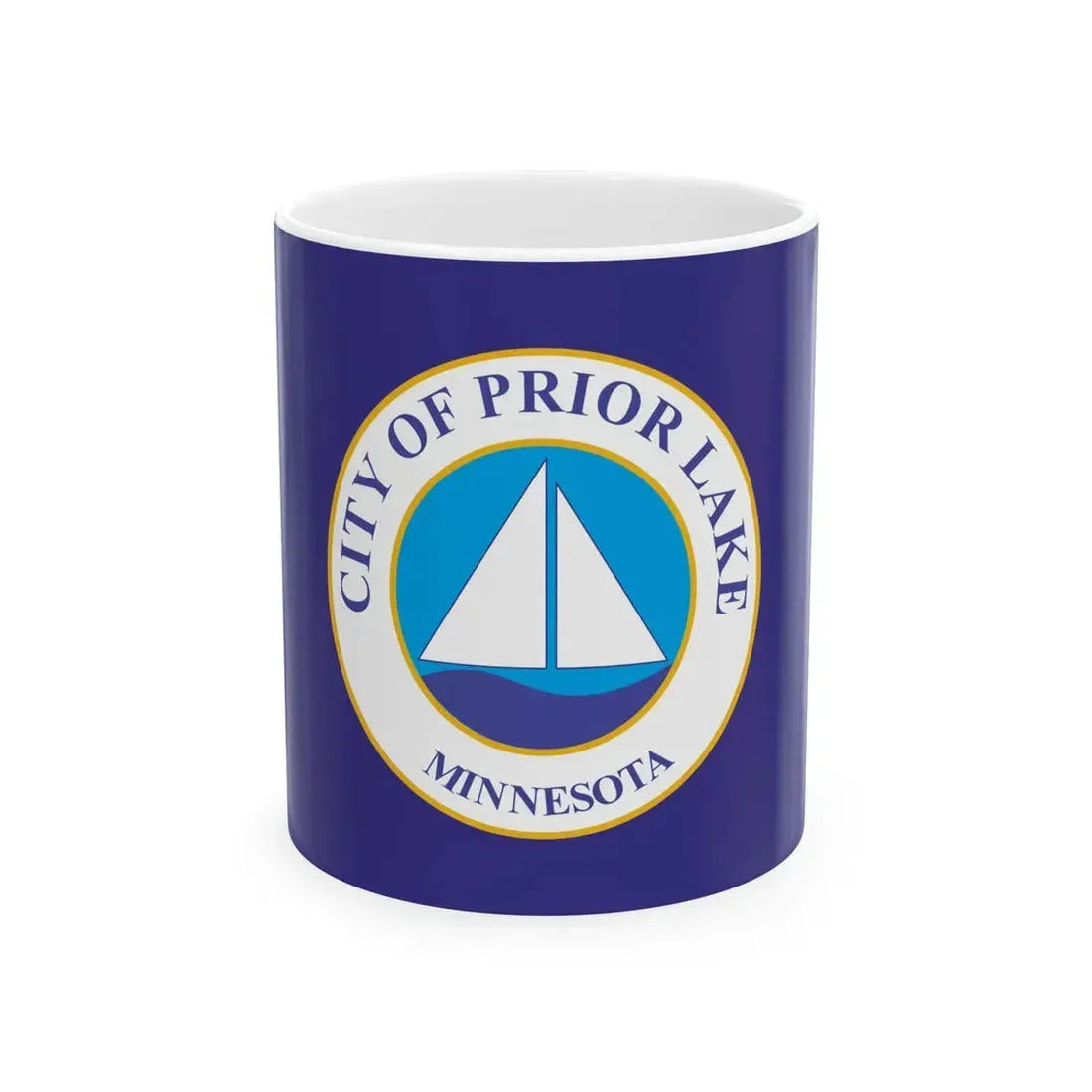 The Flag of Prior Lake Minnesota White Coffee Mug showcases a unique and captivating design inspired by the official flag of Prior Lake, Minnesota, United States. The flag features three main elements: a circular shield divided into four quadrants, each representing one of the city's founding families - Peterson, Prior, Swan, and Johnson. The central image is a sailor's cap with a star above it, symbolizing Prior Lake as the "Star of Scandinavia." This design embodies the rich history and strong sense of community that defines Prior Lake.