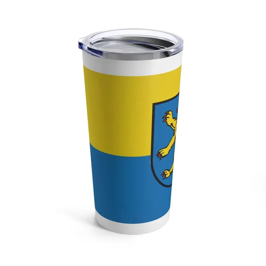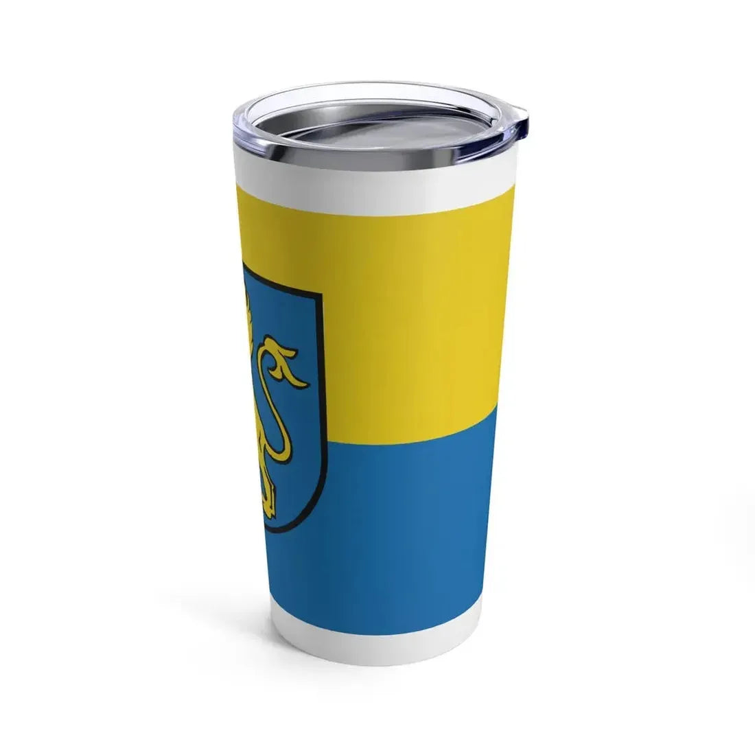 The Flag of Ravensburg Germany - Tumbler 20oz presents a unique opportunity for drinkware enthusiasts to connect with the rich history and culture of Ravensburg, Germany. This tumbler showcases the official flag of the town, which is adorned with the coat of arms depicting three golden griffins on a red field. The design is a symbolic representation of the city's heritage, making it an excellent conversation starter for history buffs and Germany enthusiasts. With its durable construction, this tumbler ensures your favorite beverage remains well-preserved while you immerse yourself in the stories behind the flag's intricate details.