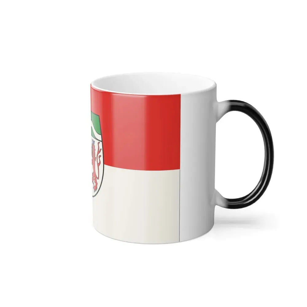 The Flag of Rheinisch Bergischer Germany - Color Changing Coffee Mug is a unique piece of drinkware that showcases the flag's vibrant colors. This mug embodies the spirit of Rheinisch Bergischer Germany with its intricate design, faithfully replicating the flag's patterns and symbols. This mug is perfect for history enthusiasts, or anyone who appreciates the culture and traditions of Germany. The coffee mug features a thermochromic coating that changes color based on the temperature of your beverage, adding an extra touch of fun to your daily routine.