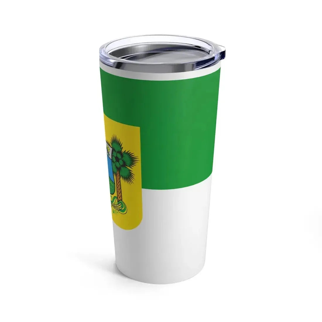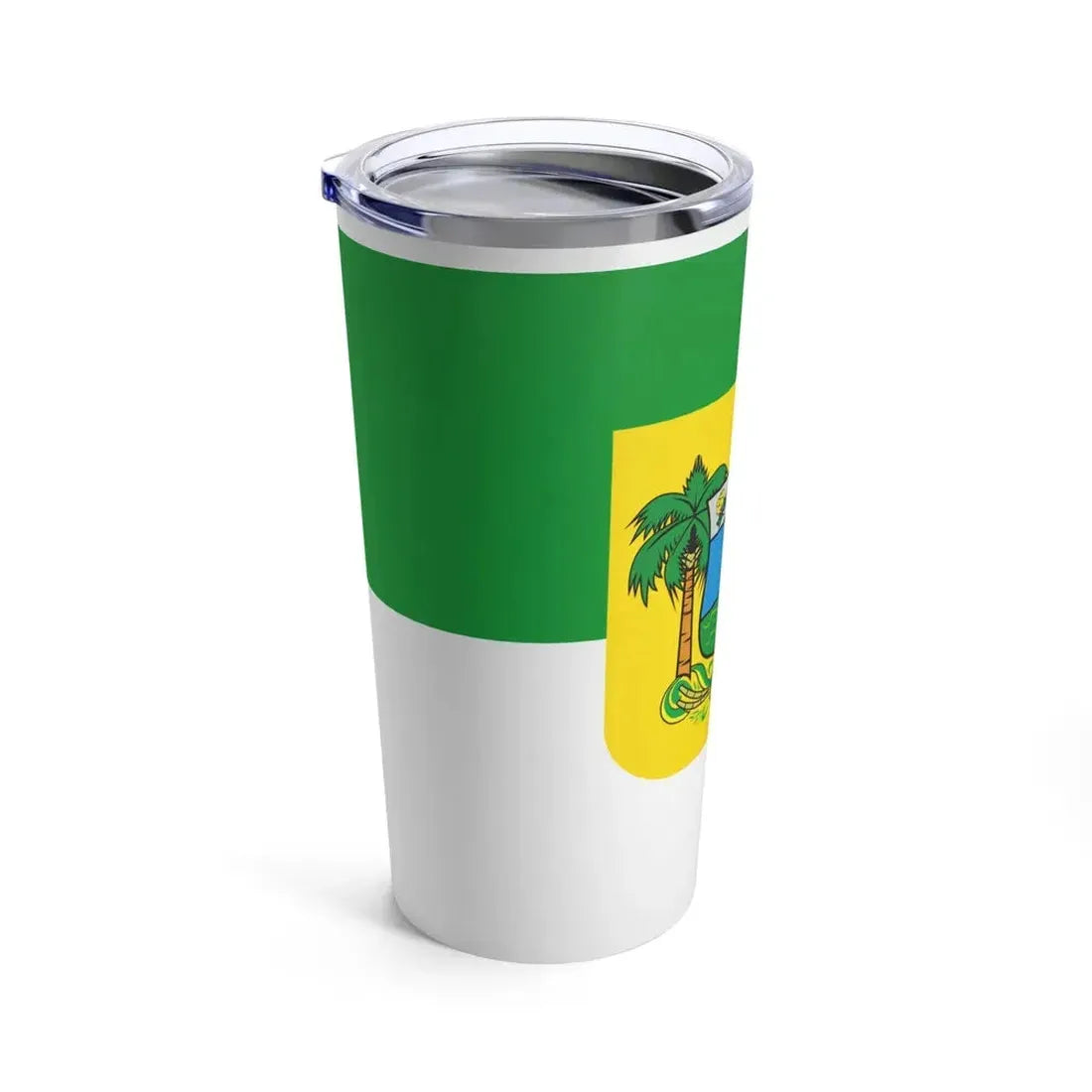 The "Flag of Rio Grande do Norte Brazil - Tumbler 20oz" showcases a unique representation of the flag of the Brazilian state of Rio Grande do Norte. The flag, officially adopted in 1947, is characterized by its yellow field with a blue square in the left corner bearing the state's coat of arms. This design symbolizes the strong maritime history of the state, as the coat of arms depicts a ship under full sail. This tumbler offers an excellent opportunity for those interested in Brazilian culture or regional symbolism to display their appreciation of this vibrant and colorful flag.