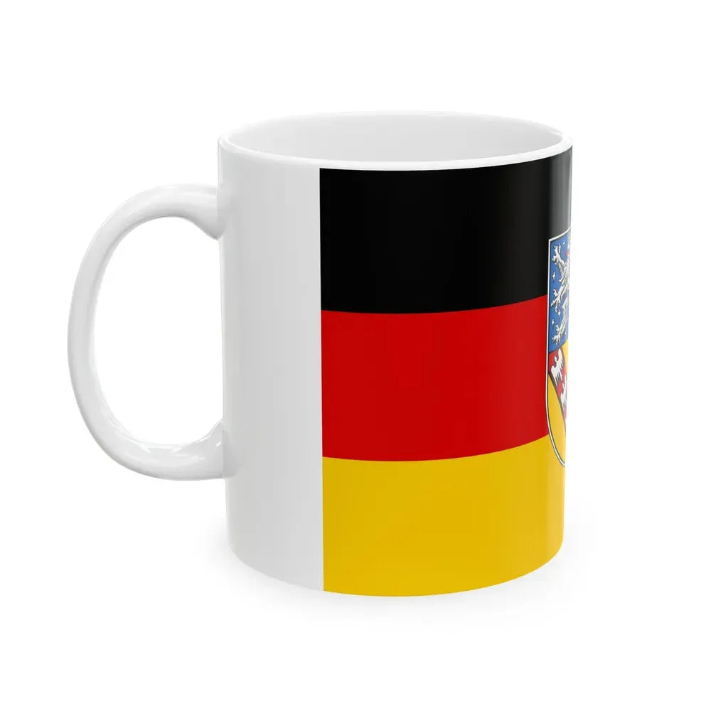 The "Flag of Saarland Germany - White Coffee Mug" is a unique piece of drinkware that showcases the flag of Saarland, one of the sixteen states of Germany. The design on this mug features the official tricolor flag of Saarland, consisting of three equal horizontal stripes in the colors black, white, and red from top to bottom. The black stripe represents the coal mining industry, while the red symbolizes the iron ore mines that were once abundant in the region. The white stripe serves as a reminder of the purity and honesty of the state's people. This mug is perfect for anyone who appreciates unique and cool drinkware, as well as those with an affinity towards German history or culture.