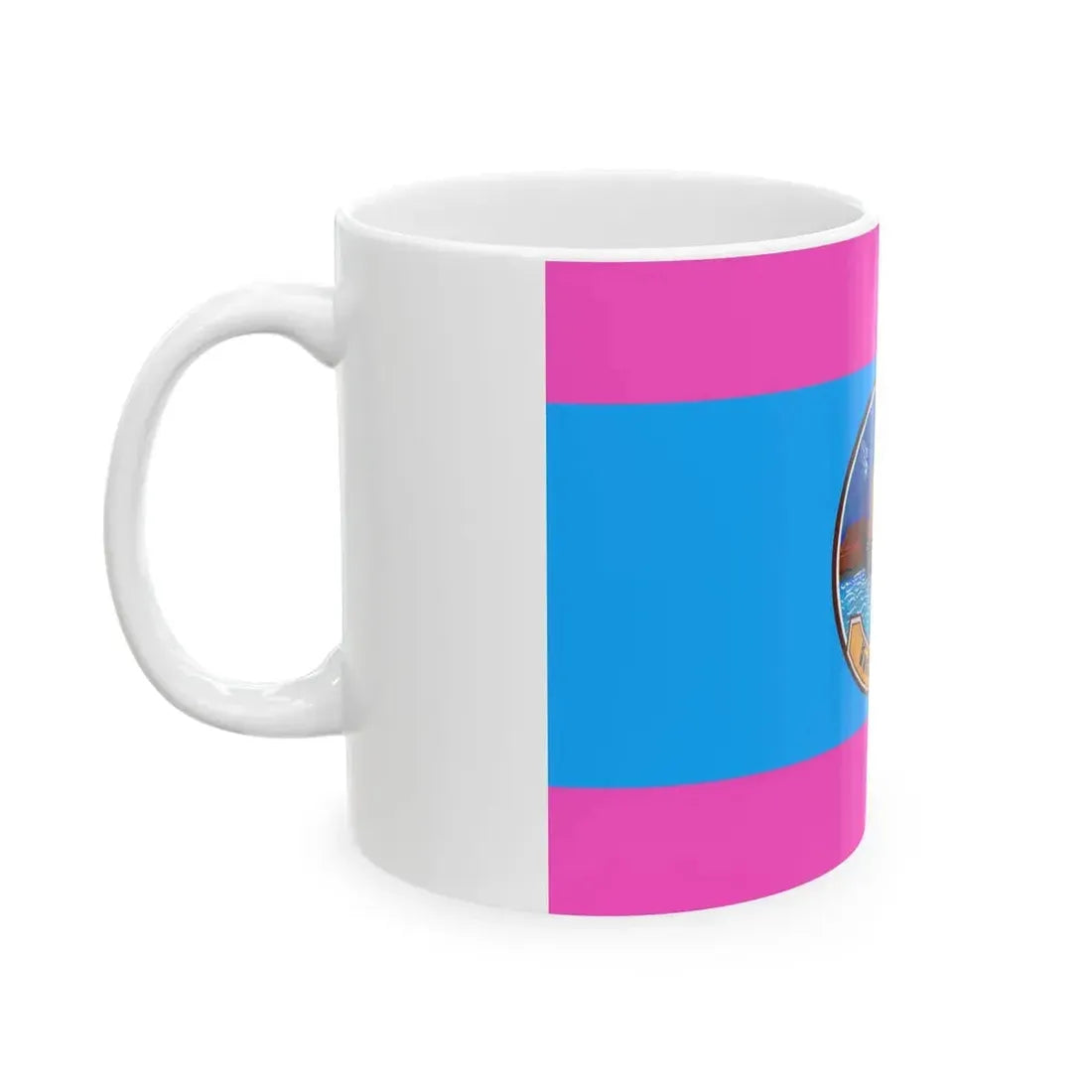 This White Coffee Mug showcases the Flag of Samut Sakhon Province, Thailand. The design features a white field divided into nine equal squares alternating red and blue, with a white elephant placed in the center. The flag symbolizes unity, strength, and resilience, reflecting the spirit of Samut Sakhon - a province known for its vibrant fishing communities and floating markets. This mug is perfect for anyone who appreciates unique and cool drinkware, as well as those with an interest in Thai culture or Southeast Asian history.