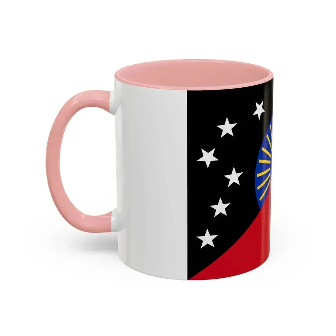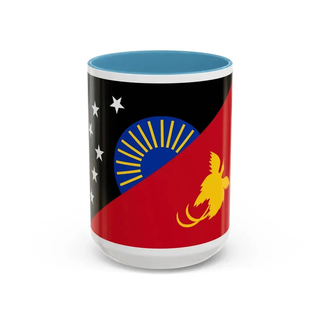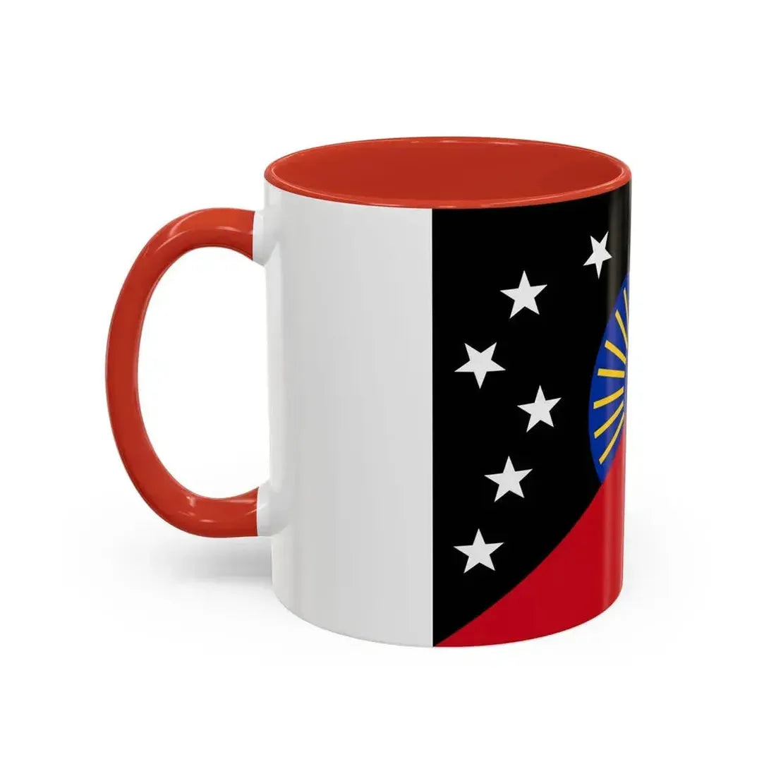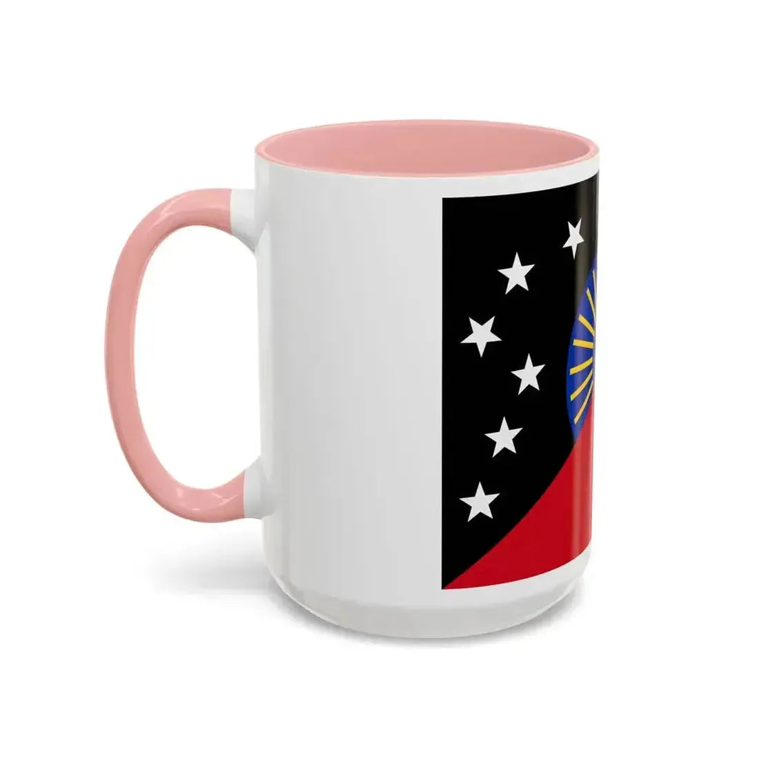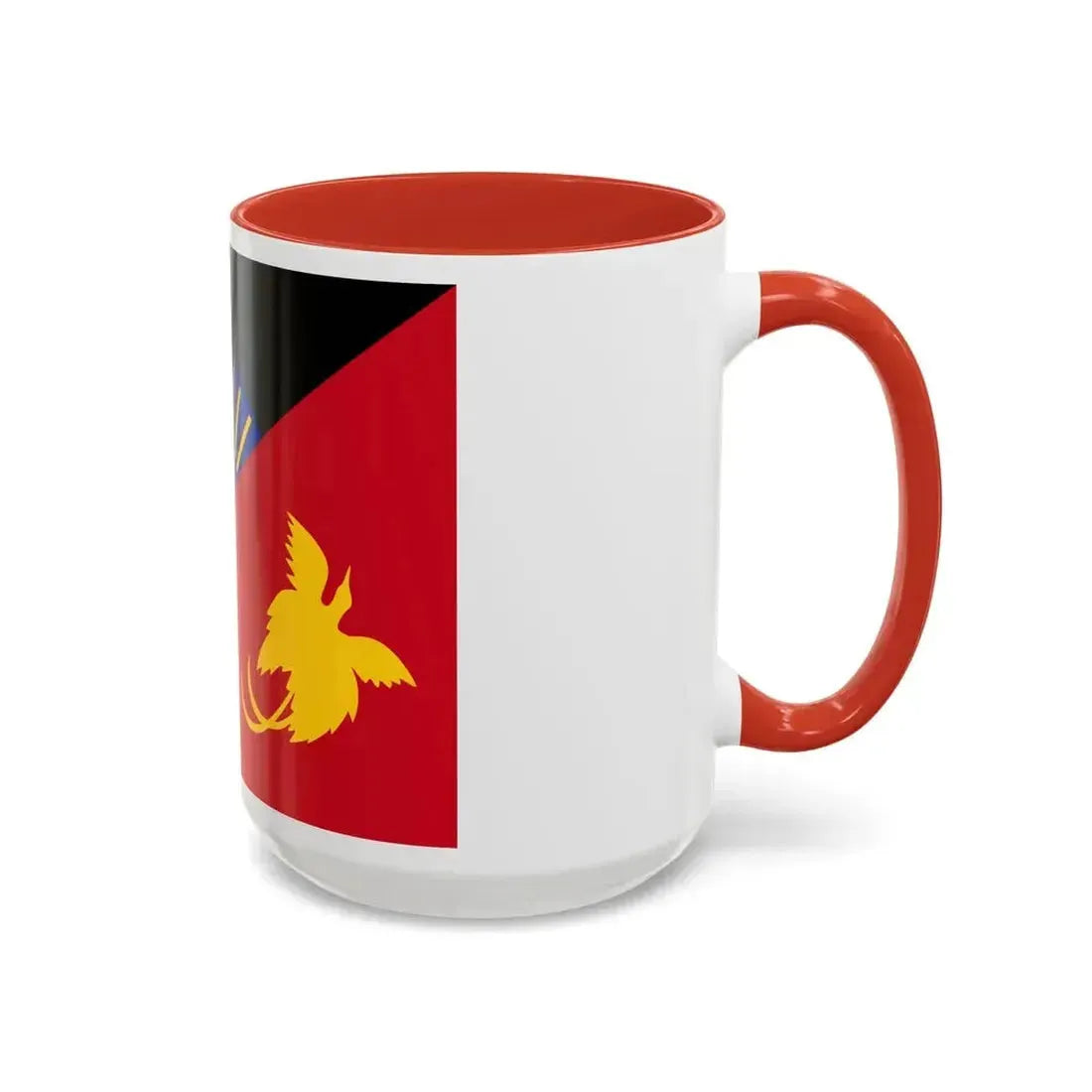 Accent ceramic mugs with a glossy white exterior and a colored interior & handle. Offered in 11 oz (≈330 ml) and 15 oz (≈440 ml), these mugs pair strong visual contrast with everyday durability — lead- and BPA-free.