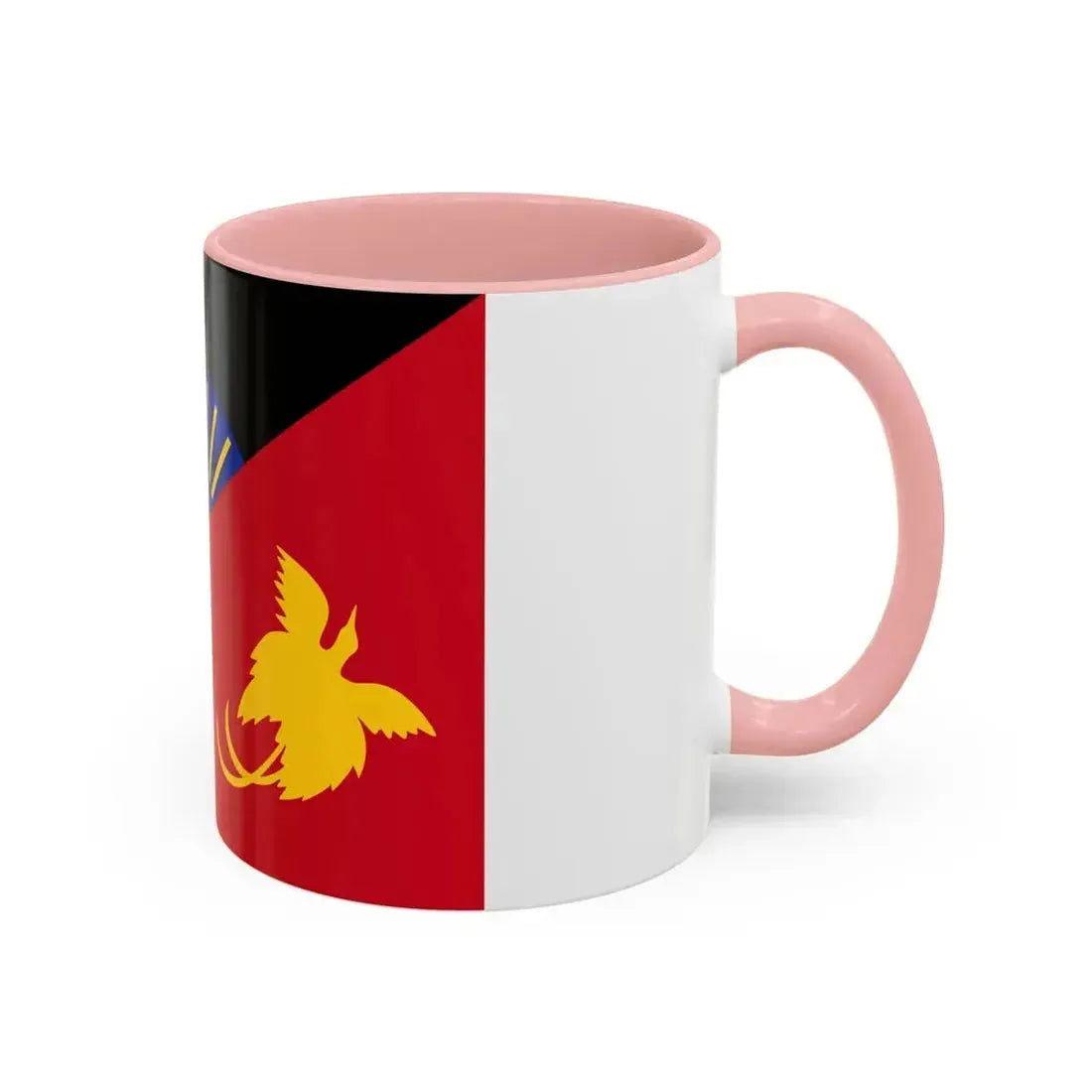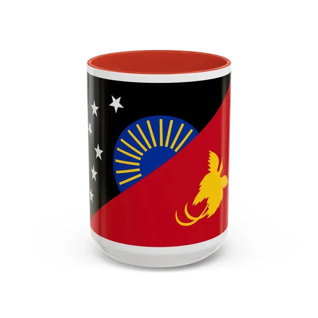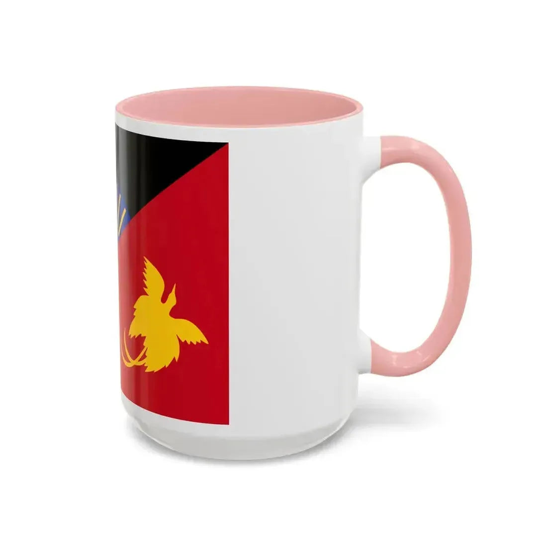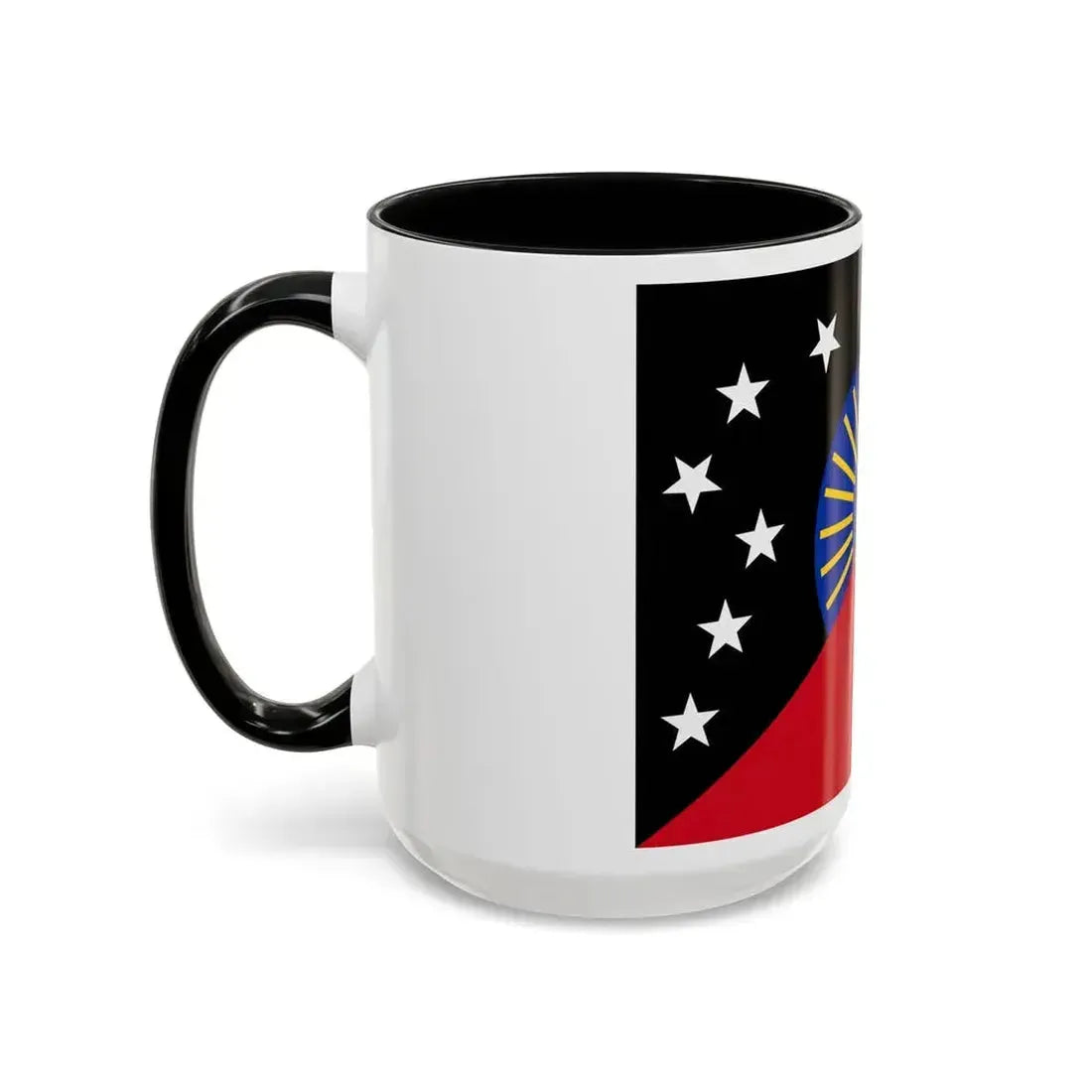 Accent ceramic mugs with a glossy white exterior and a colored interior & handle. Offered in 11 oz (≈330 ml) and 15 oz (≈440 ml), these mugs pair strong visual contrast with everyday durability — lead- and BPA-free.