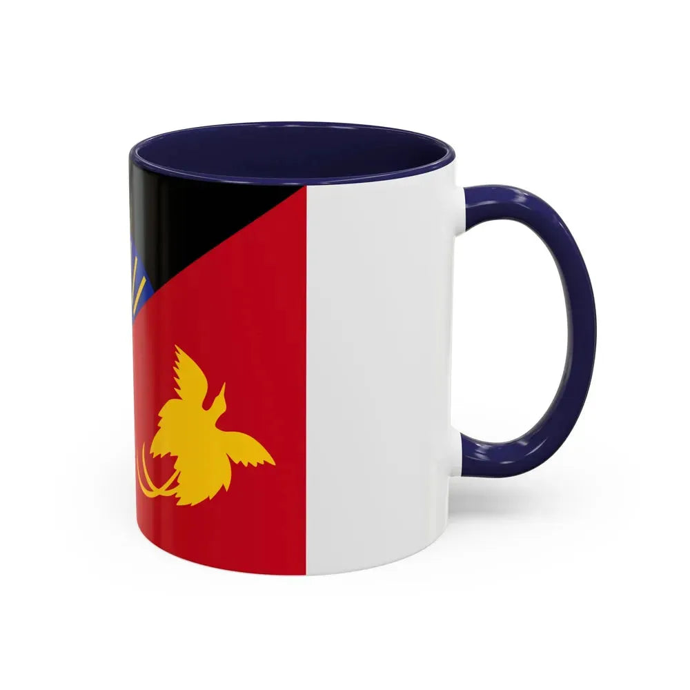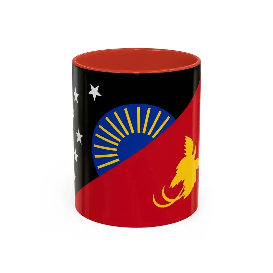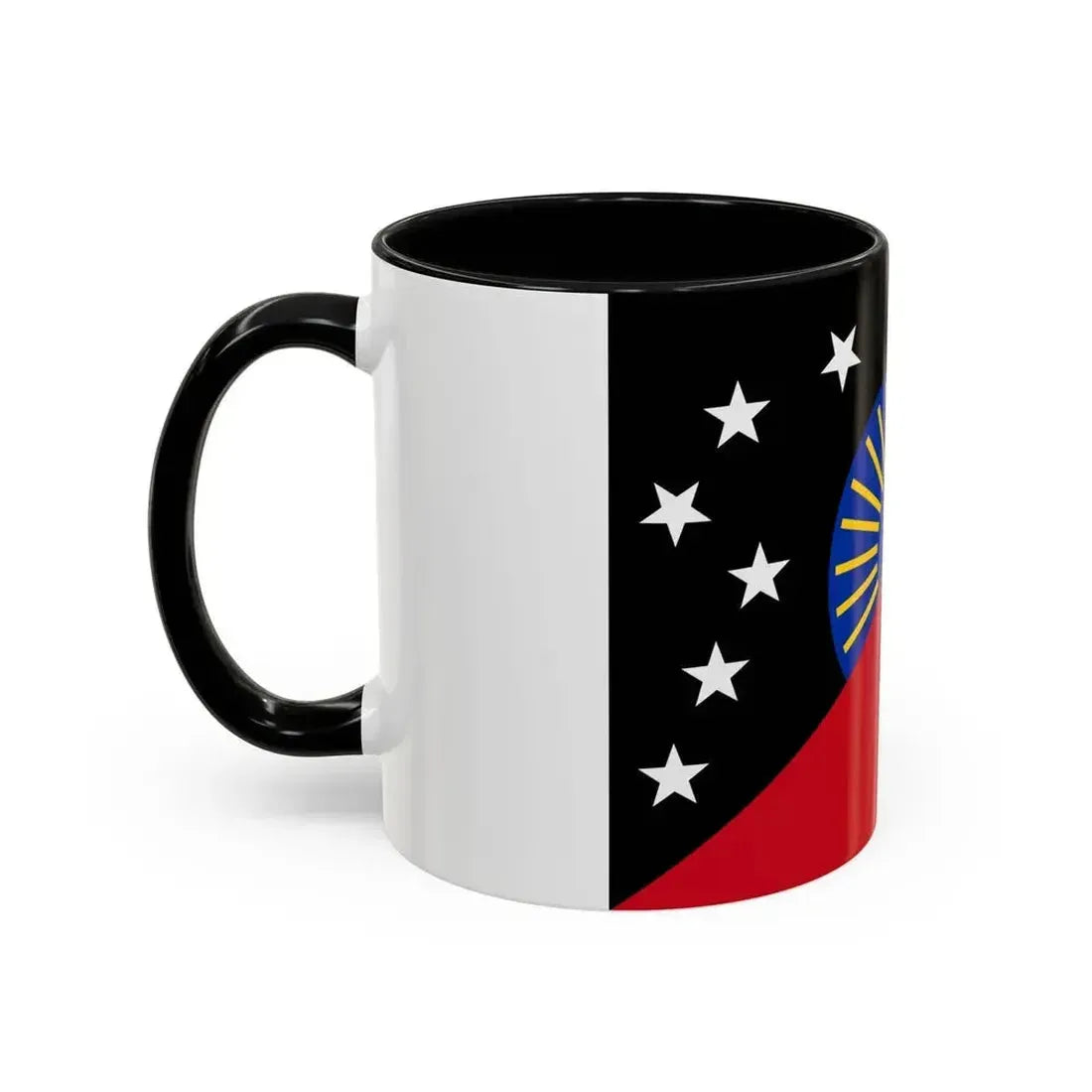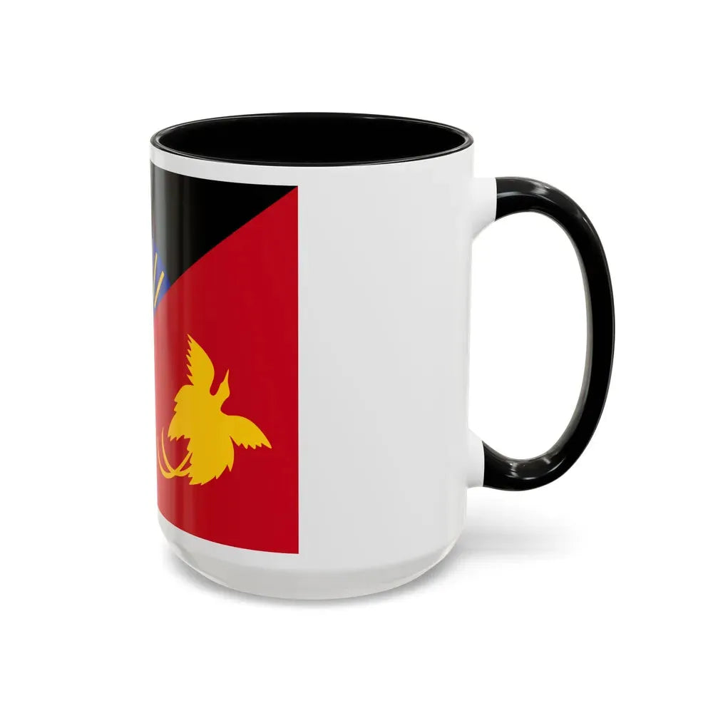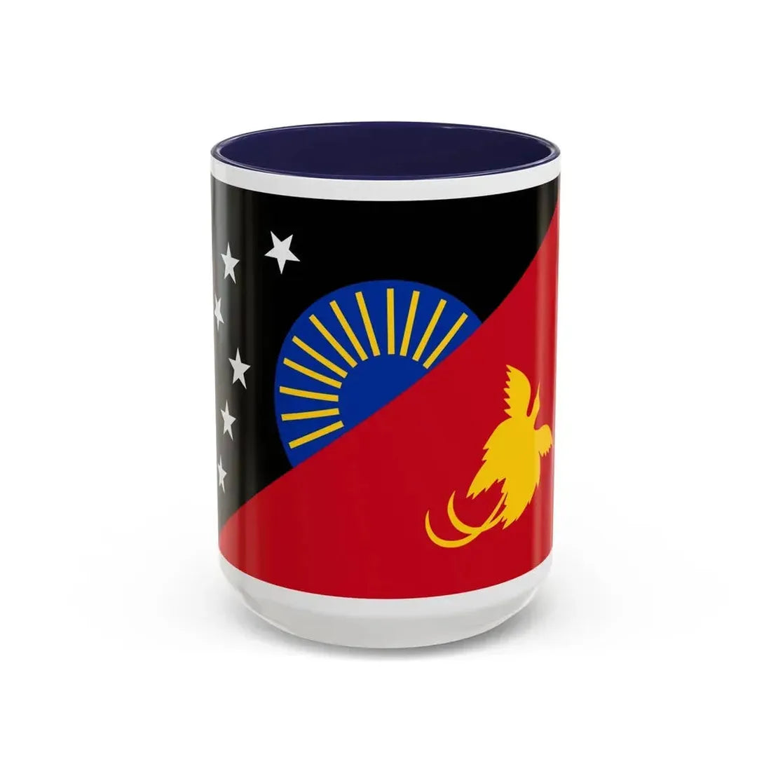 Accent ceramic mugs with a glossy white exterior and a colored interior & handle. Offered in 11 oz (≈330 ml) and 15 oz (≈440 ml), these mugs pair strong visual contrast with everyday durability — lead- and BPA-free.