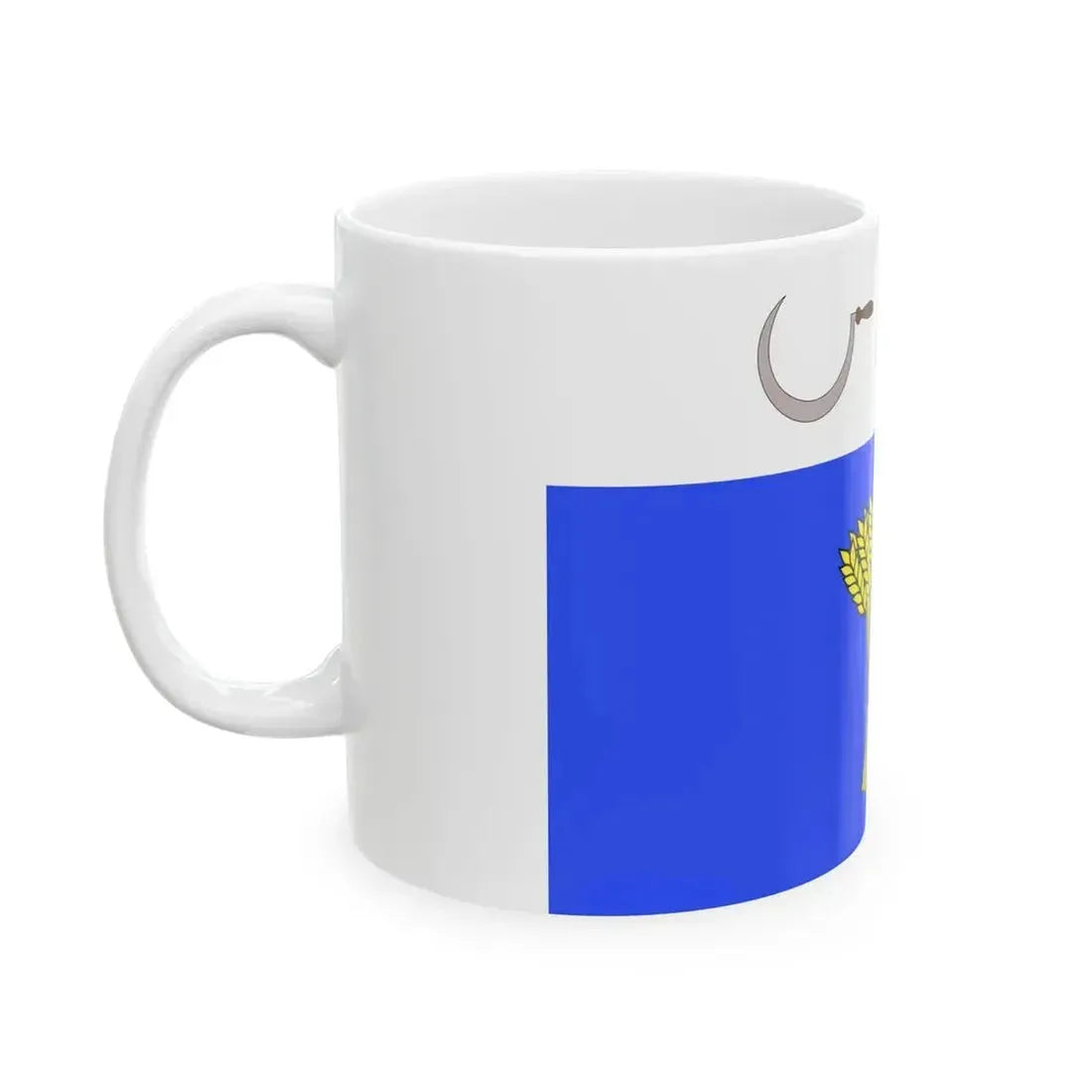Sturdy white ceramic mugs available in 11 oz (≈330 ml) and 15 oz (≈440 ml), with a glossy finish and comfortable C-handle — microwave and dishwasher safe, and made from lead- and BPA-free materials.