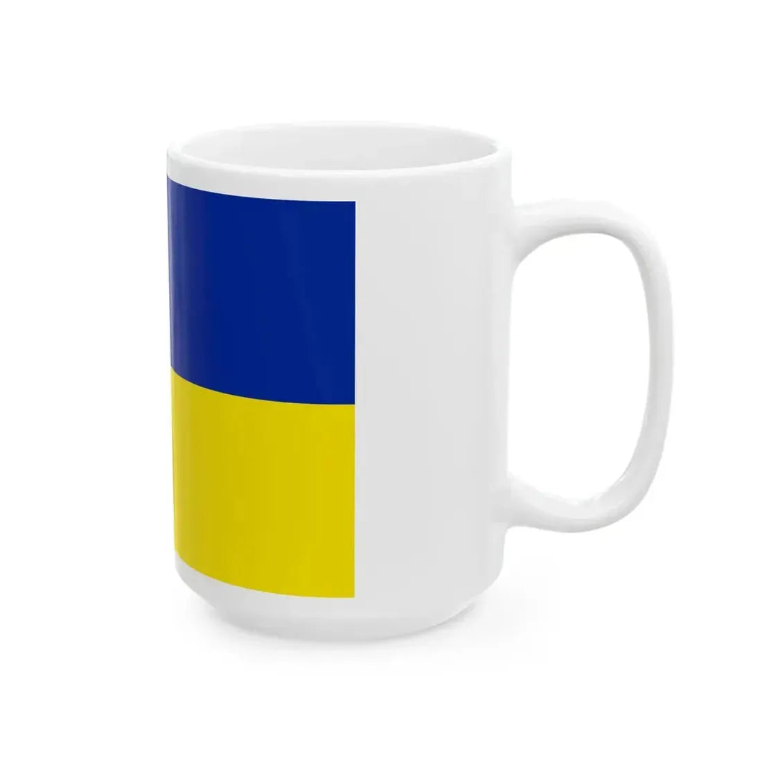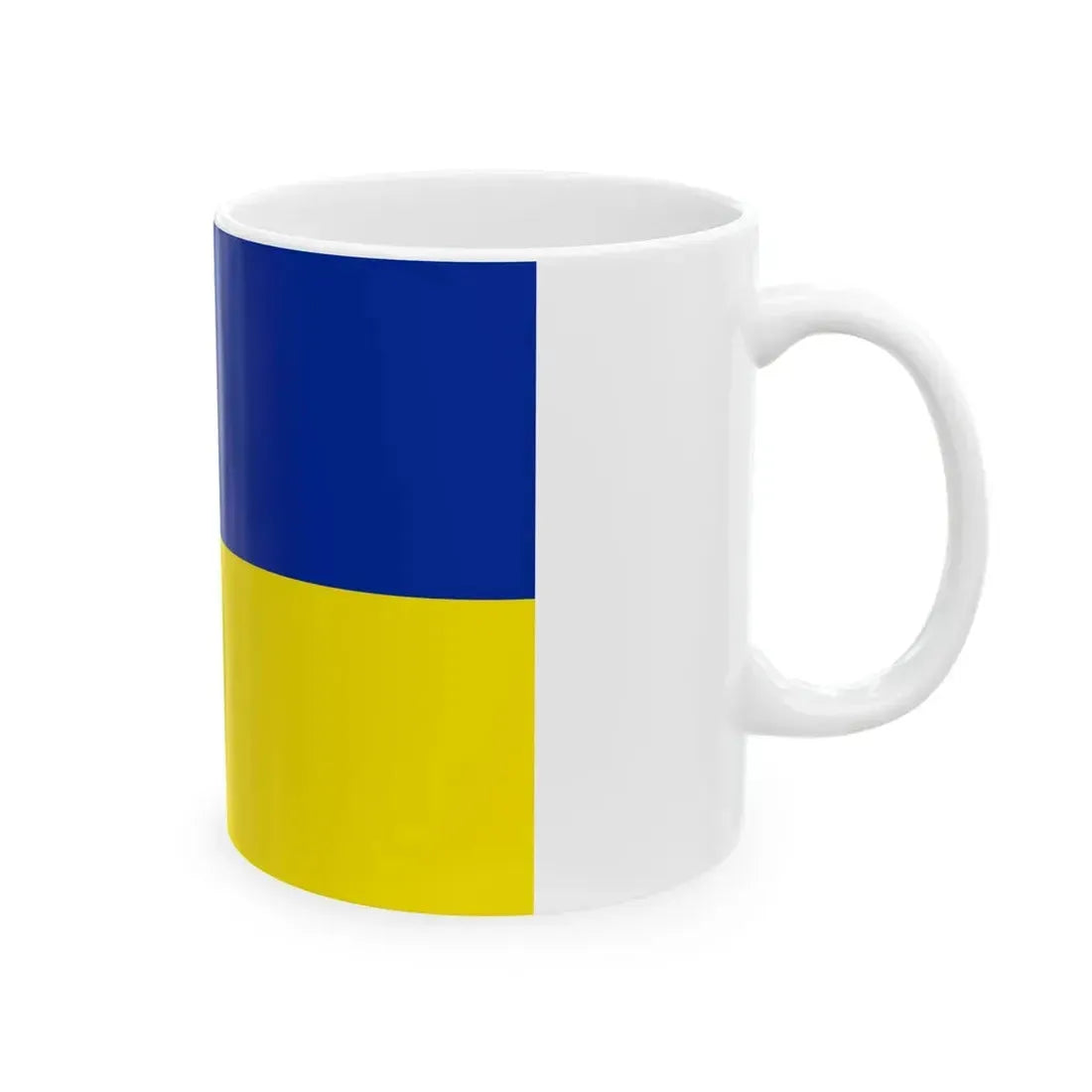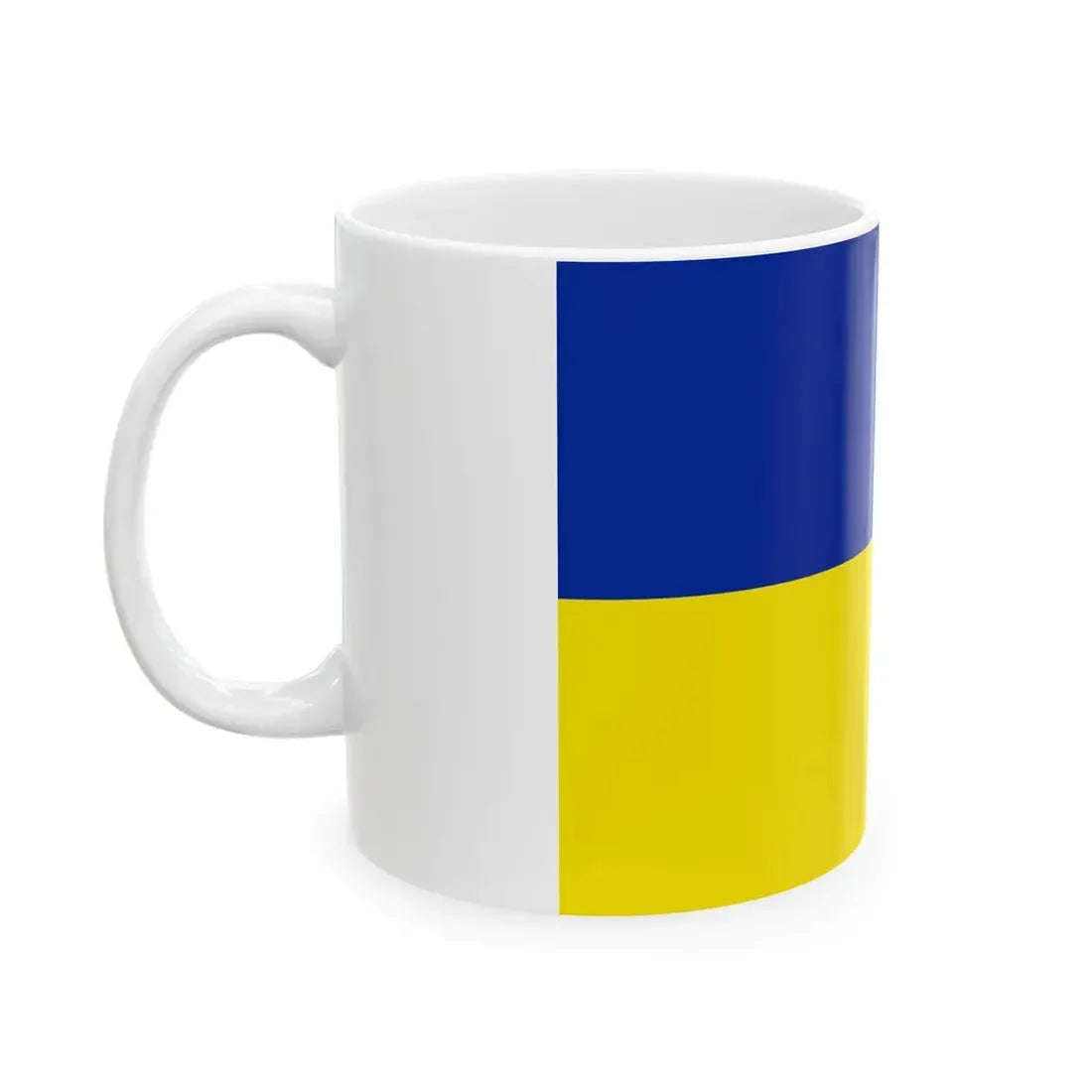 This white coffee mug showcases the design inspired by the flag of Santiago de Machaca, a historic city located in the Beni department of Bolivia. The artwork features three horizontal stripes, symbolizing unity, with the central strip representing the Yacuma River, which flows through the region. On the left and right sides are blue fields with yellow stars, each star representing one of the nine provinces of the former Republic of Santiago de Machaca. This unique and culturally significant design is perfect for anyone who appreciates unique and cool drinkware and has an interest in Bolivian history or South American culture.