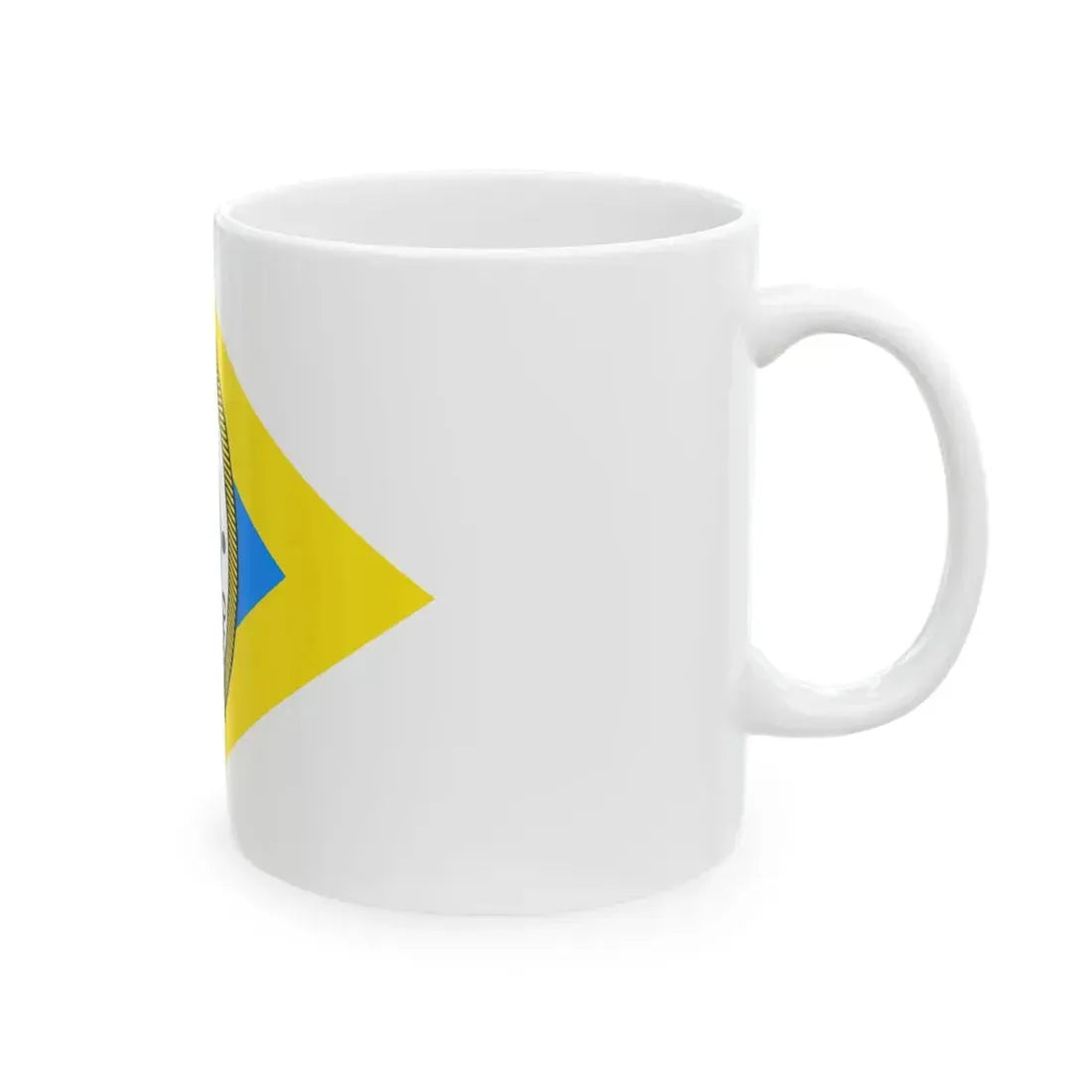 This White Coffee Mug showcases the Flag of Scioto County, Ohio, United States as its design. The flag, adopted in 1975, features a blue field representing the waters of the Scioto River, with a white star symbolizing the county's seat, Portsmouth. The flag's central image is a red and white checkerboard, signifying the county's founding by Revolutionary War veterans and their ties to the Old Northwest Territory's checkered history. This unique and eye-catching coffee mug is perfect for anyone who appreciates unique and cool drinkware, as well as those with an interest in Ohio history or county symbols.