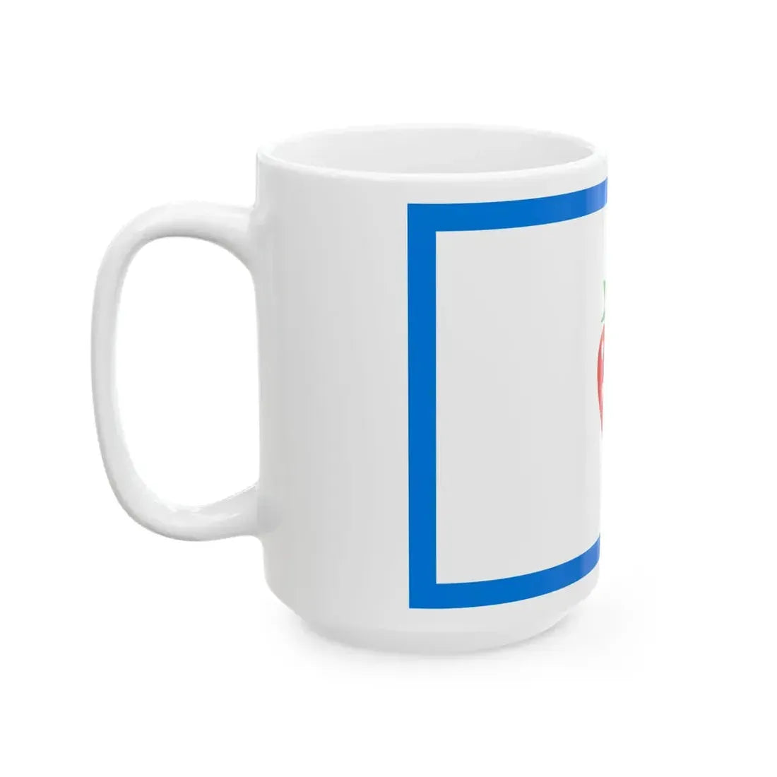 This white coffee mug showcases an artistic representation of the Flag of Searcy County, Arkansas, United States. The design, inspired by the original flag, features a blue field split into four quarters, each representing a distinct aspect of Searcy County's rich history and geography. The upper left quarter displays a white star symbolizing White River National Forest, while the upper right showcases two gold bars to represent the Ozark Mountains. The lower left quarter includes a gold diamond for the Diamond City Crystal Mine, and the lower right presents a red field with a white cross, signifying the county's early settlers of German descent. Perfect for anyone who appreciates unique and cool drinkware, this coffee mug makes an excellent gift for those with connections to Searcy County or for history enthusiasts interested in Arkansas heritage.